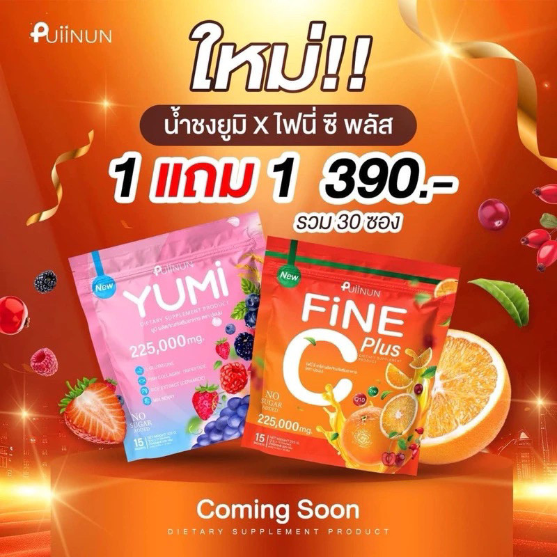 น้ำชงยูมิ [📍1แถม1 | ลดในไลฟ์𝟱𝟬%] PUIINUN YUMI ไฟนี่ ซี FiNE C ฟื้นฟูผิวโทรม อร่อย ขนาด 15 ซอง