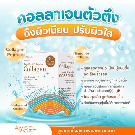 ซื้อครบรับของแถม! Amsel Collagen (Peptide& Tripeptide)แอมเซล เปปไทด์ & ไตรเปปไทด์ คอลลาเจน 5,000 มก
