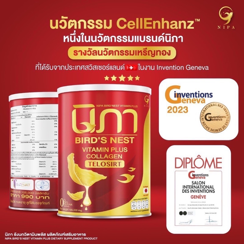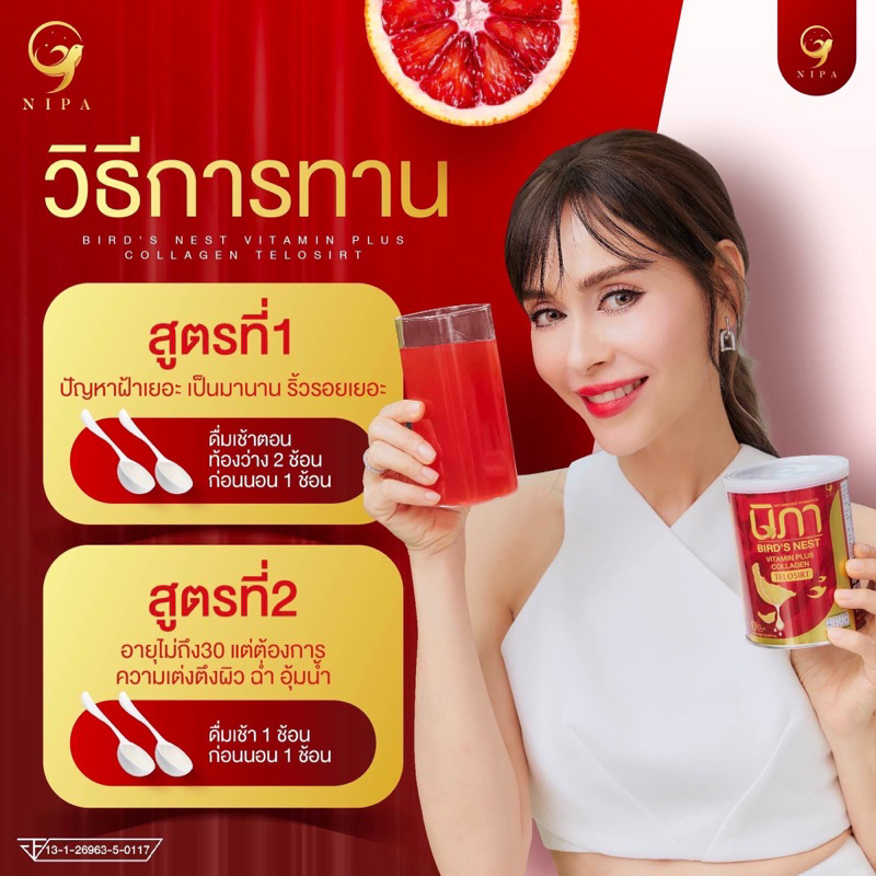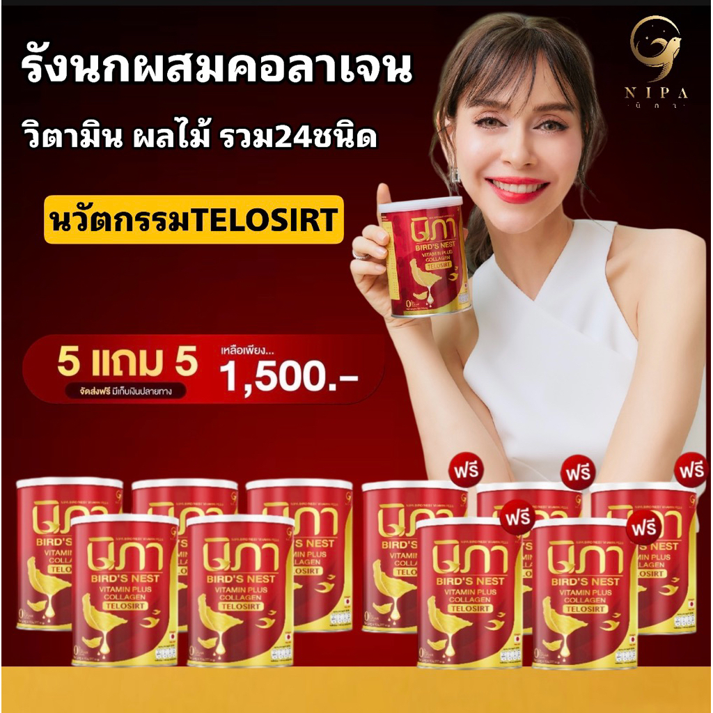นิภา5แถม5 นิภานัทมีเรีย ผงต้านฝ้ารังนกผสมวิตามิน nipaนิภา(นิภา10กระป๋อง)