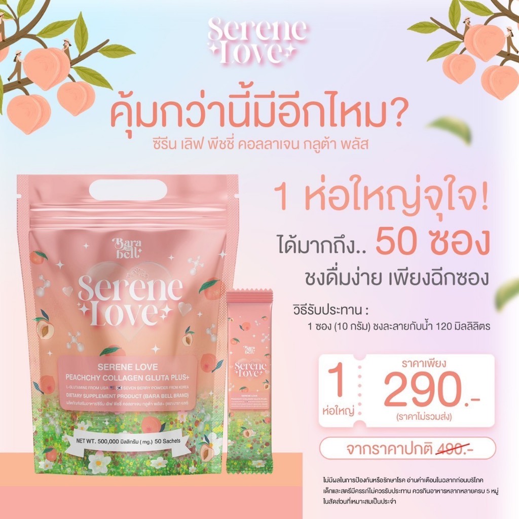 น้ำชงซีรีนเลิฟ Serene Love Grass Skin คอลลาเจน กลูต้า วิตามินซี ลดสิว ลดริ้วรอยกอนวัย ผิวเรียบเนียน