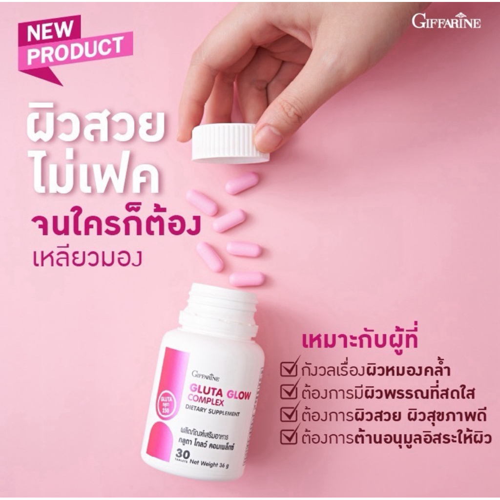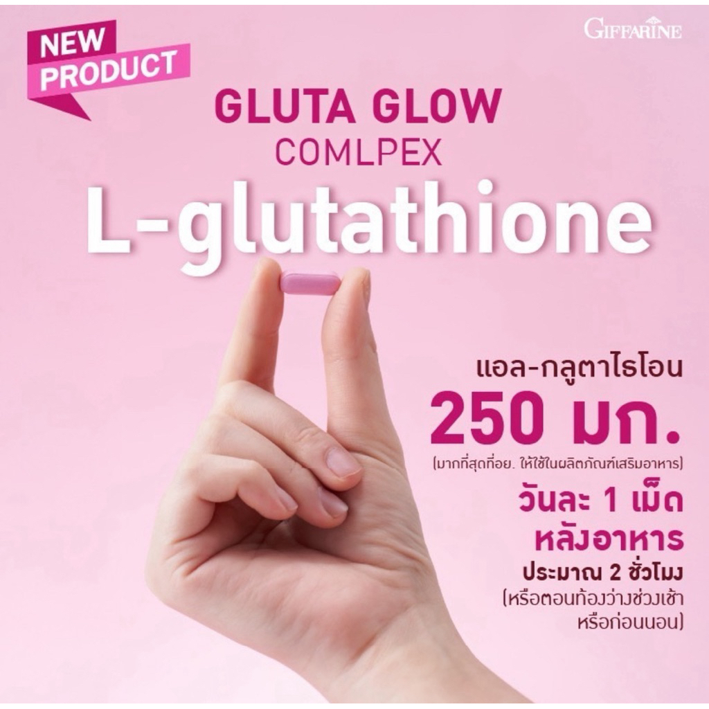 ผิวสวยกระจ่างใส กิฟฟารีน กลูตา โกลว์ คอมเพล็กซ์ ผลิตภัณฑ์เสริมอาหารแอล-กลูตาไธโอน (30 เม็ด)