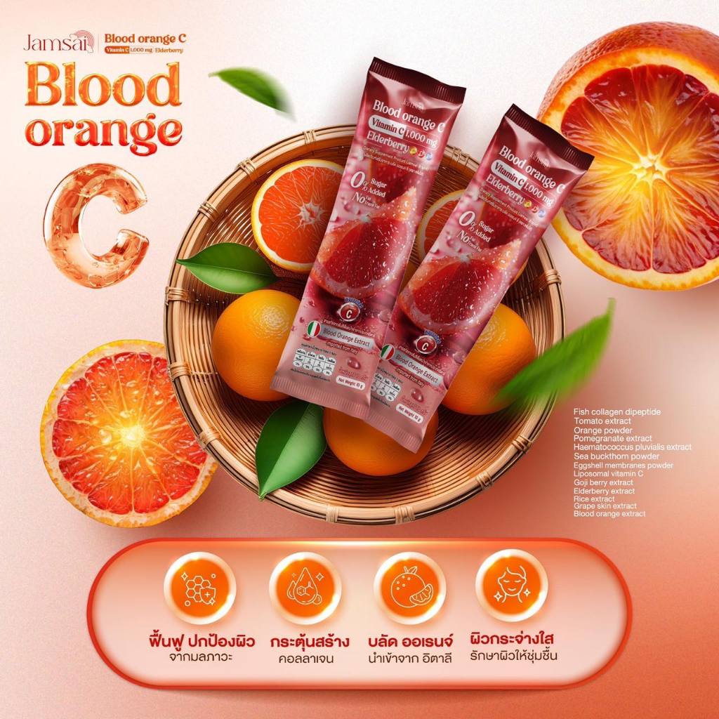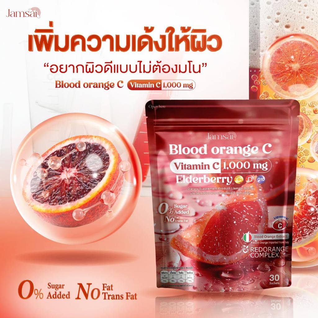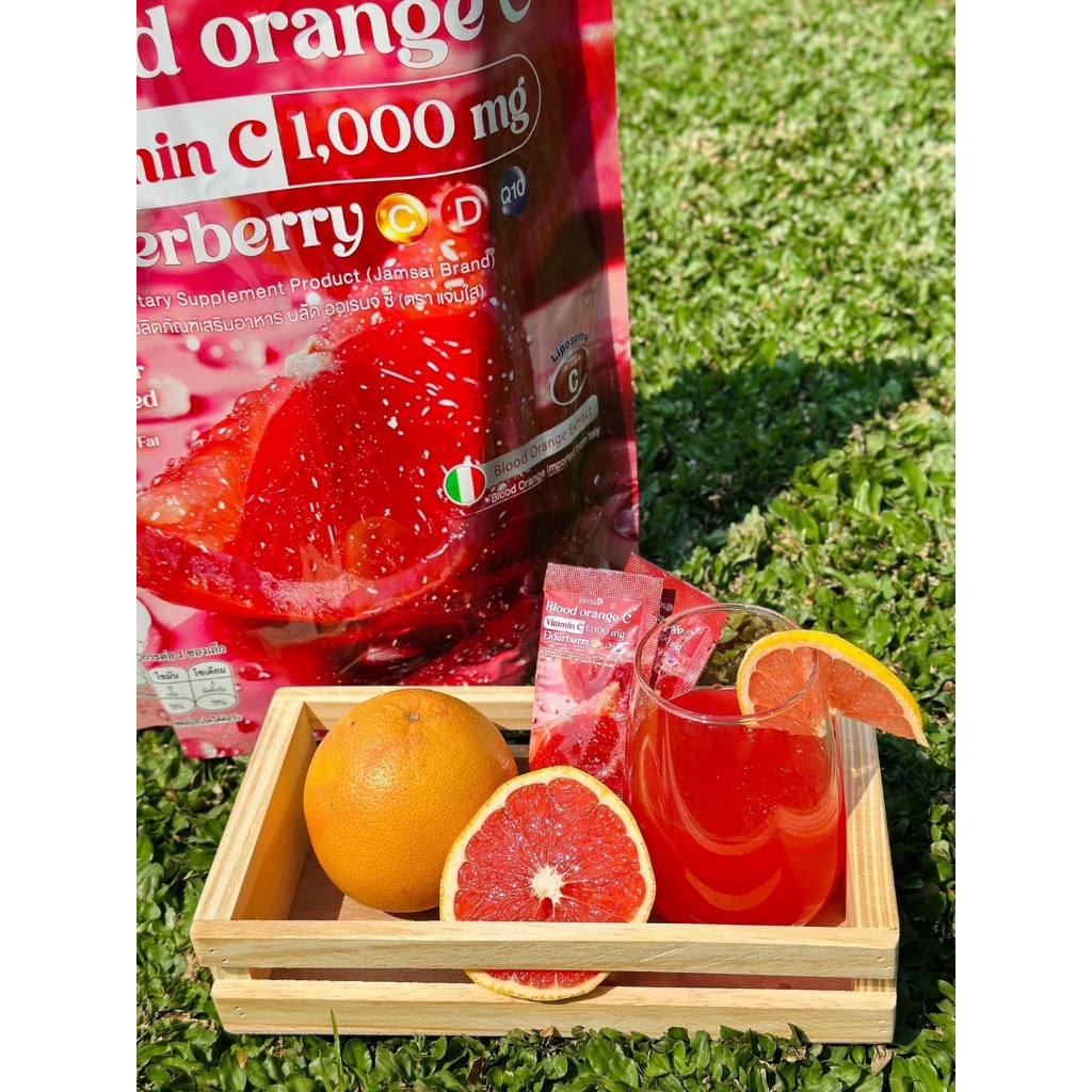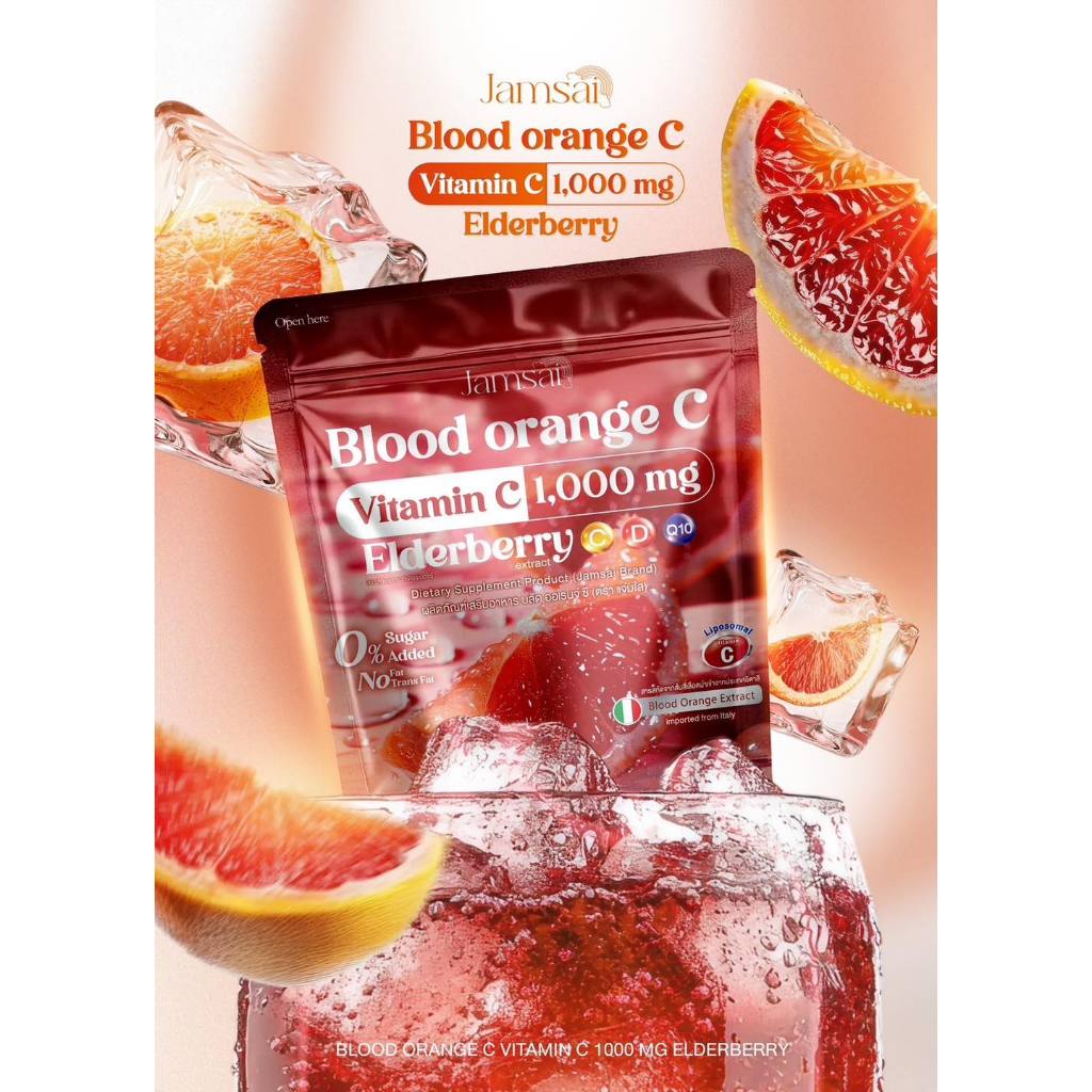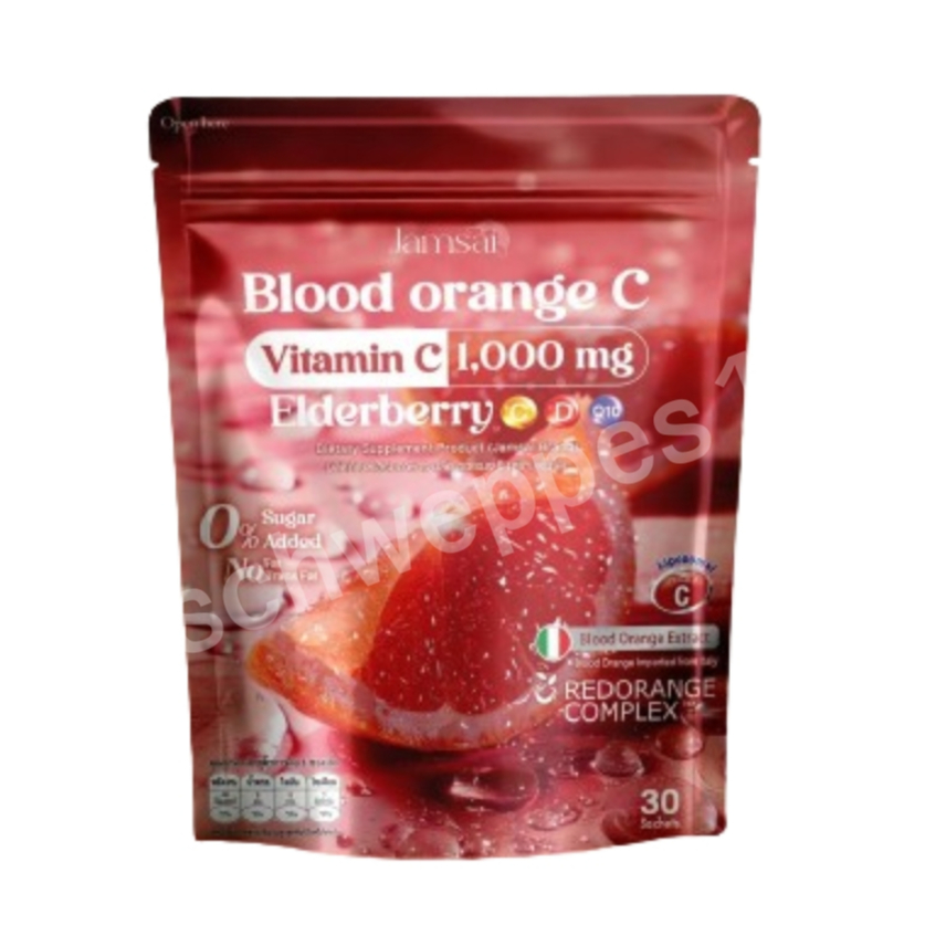น้ำชงส้มเลือดเเจ่มใส บลัด ออเรนจ์ แจ่มใส ส้มสีเลือด วิตามินซี 1,000 mg. Jamsai Blood Orange C 1ห่อ30ซอง