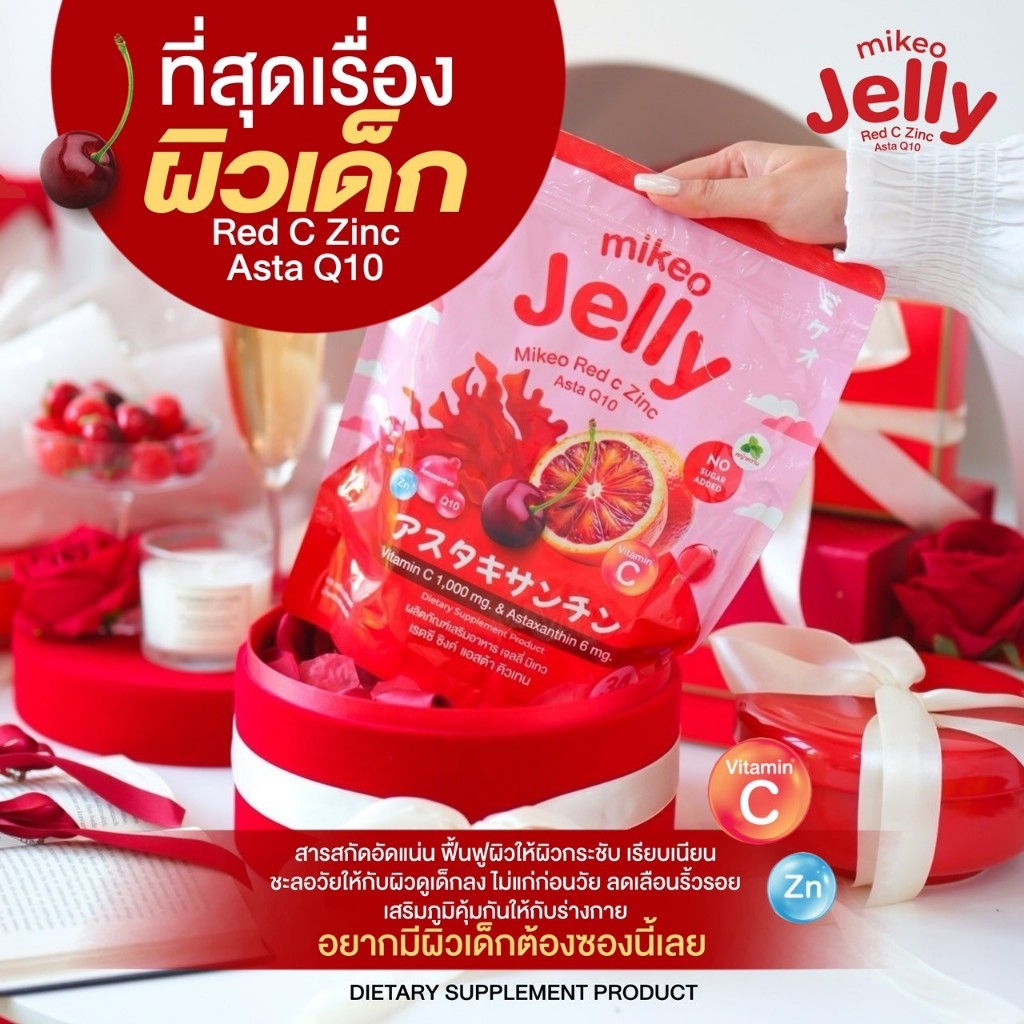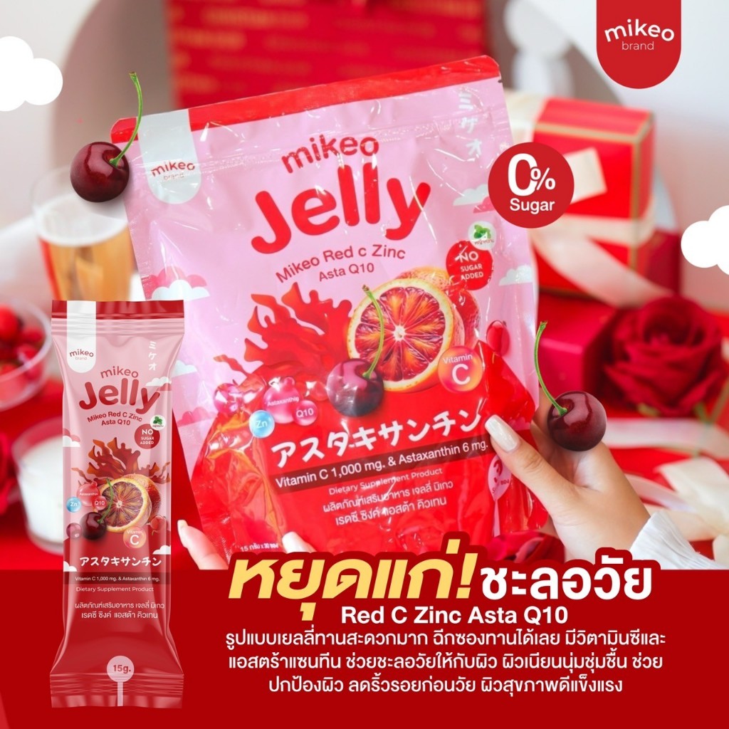 มิเกว เจลลี่ เรดซี ซิงค์ แอสตร้า คิวเท็น 1ห่อใหญ่30ซอง ขนาดซองละ15กรัม