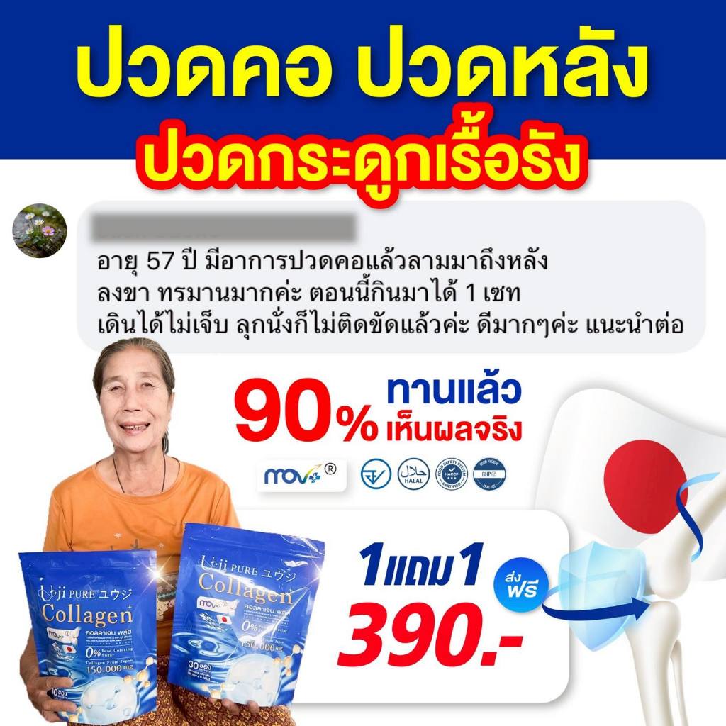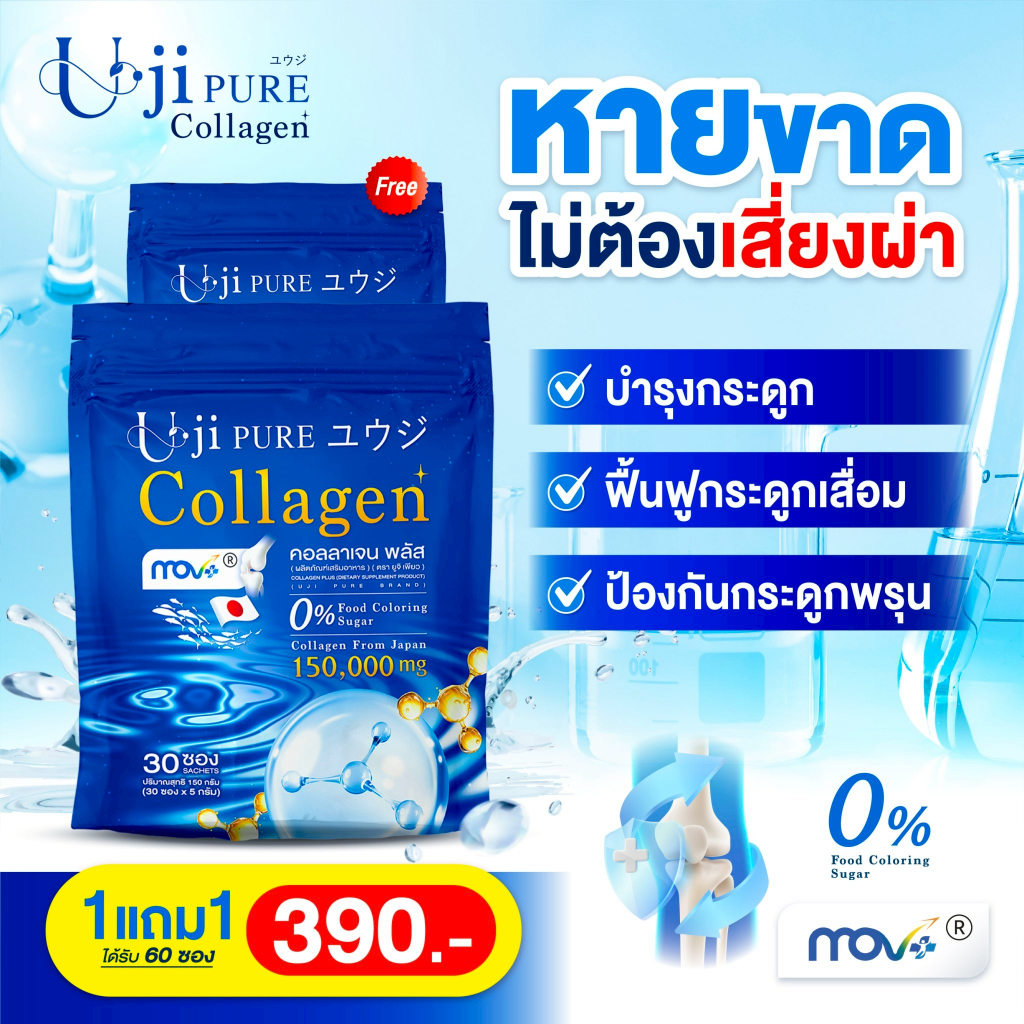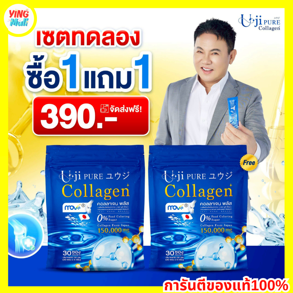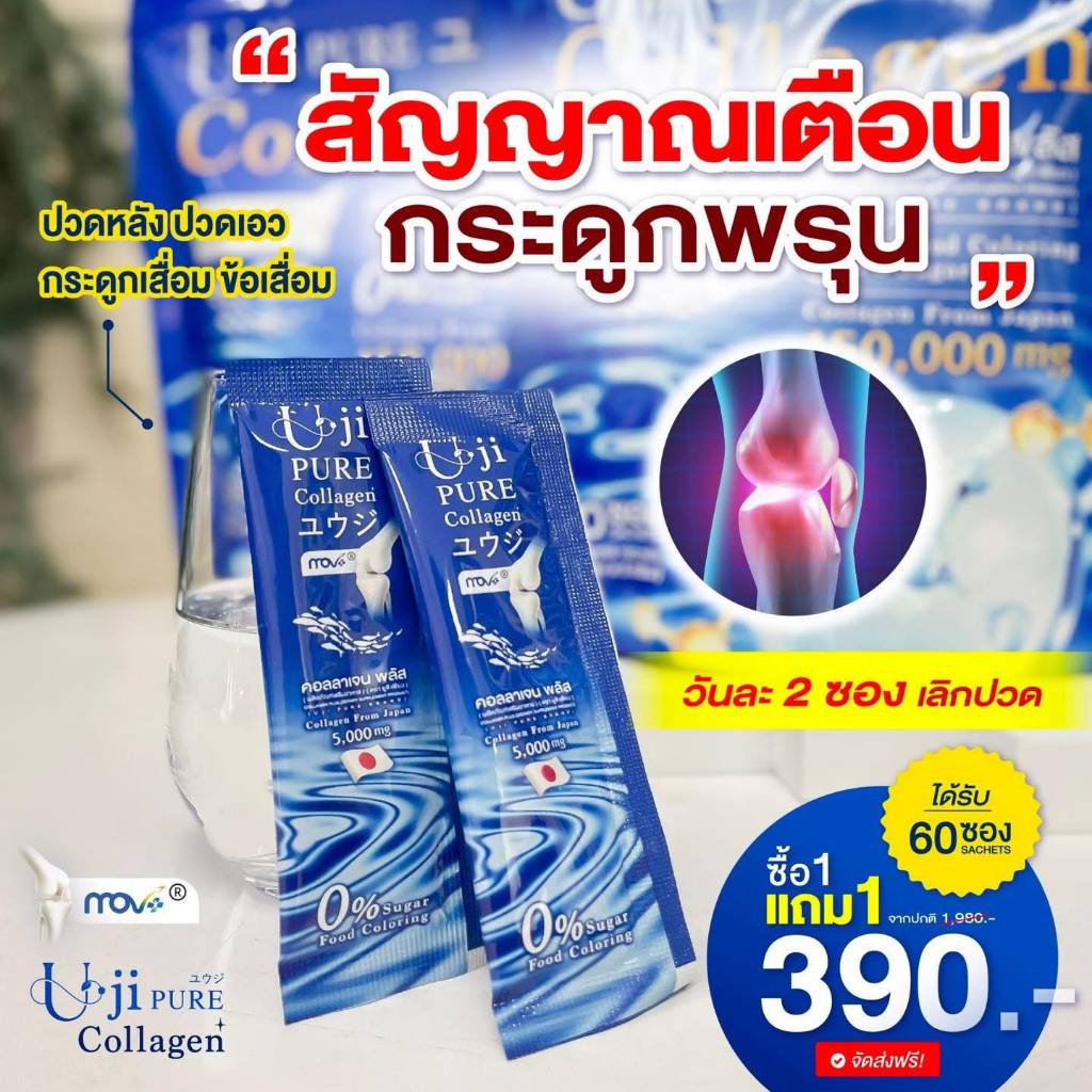 ยูจิเพียว คอลลาเจน รสเมล่อน Uji pure Collagen (60ซอง) ดูแลข้อ เข่า กระดูก