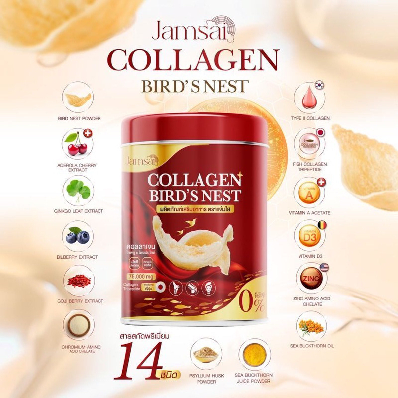 แท้💯% คอลลาเจนรังนกแจ่มใส คอลลาเจนแจ่มใส Jamsai Collagen Bird Nest บรรจุ 15 ซอง