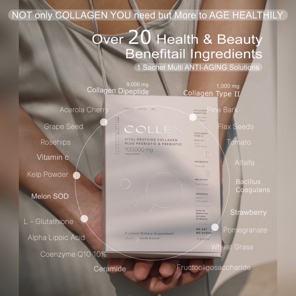โปร 3 กล่อง COLLEX Vitamin Collagen 100,000 mg /box Probiotic & Prebiotic บำรุงผิวสวย หัวใจ ข้อกระดูก ปรับสมดุลย์ลำ ฯลฯ