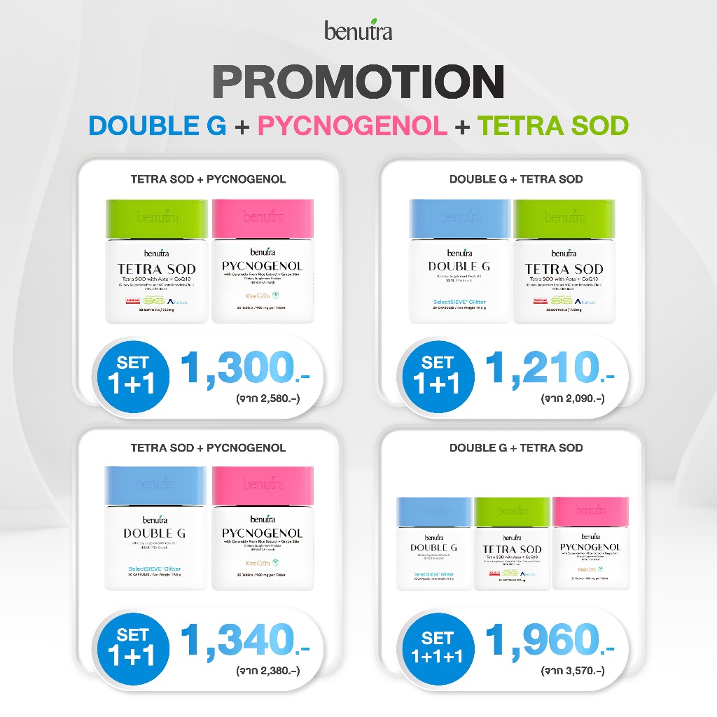 เซ็ตบูสต์ผิวขาวใสสุดคุ้ม Benutra เตตระ เอสโอดี+พิกโนจีนอล+ดับเบิ้ลจี ผิวขาวใส ต้านอนุมูลอิสระ