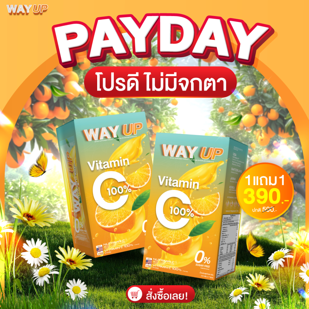เวย์อัพวิตามินซี 1 กล่อง แถม 1กล่อง (วิตามินซี แบบผงชงดื่ม วิตามินซีสูง เสริมภูมิ สร้างคอลลาเจน)