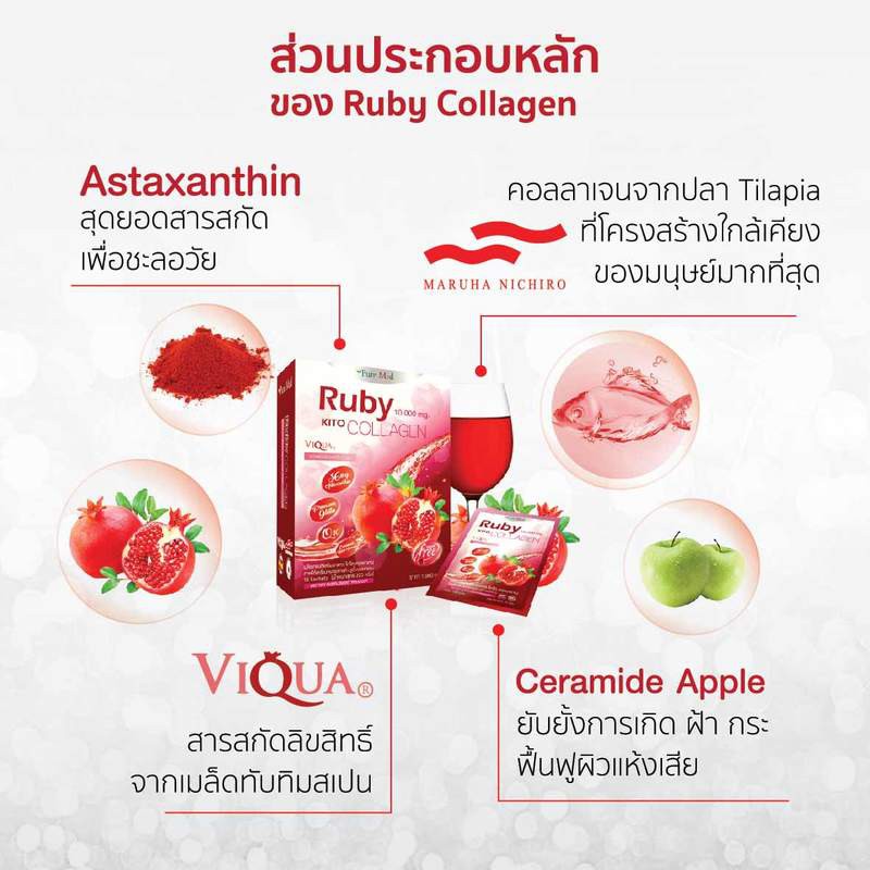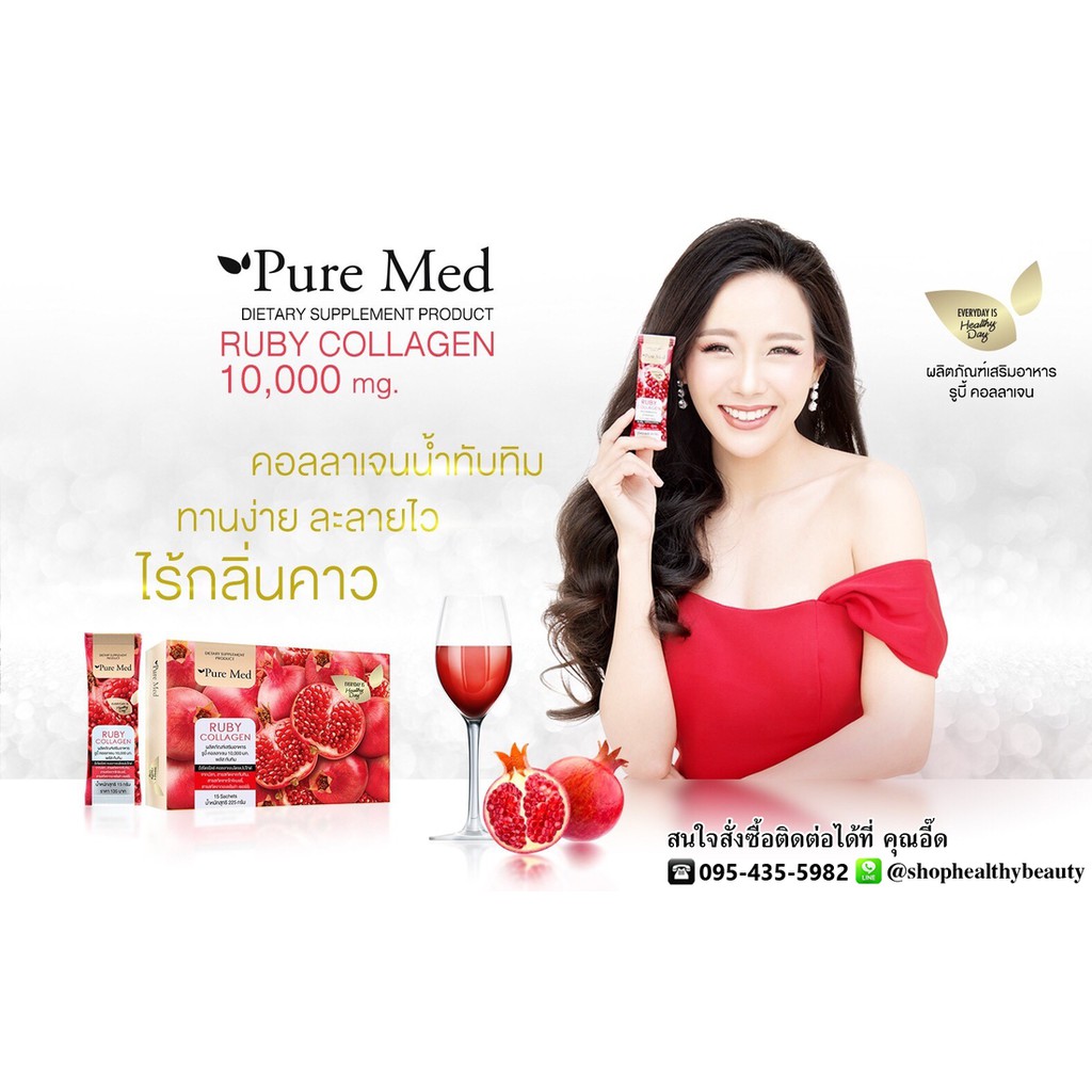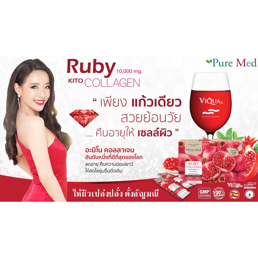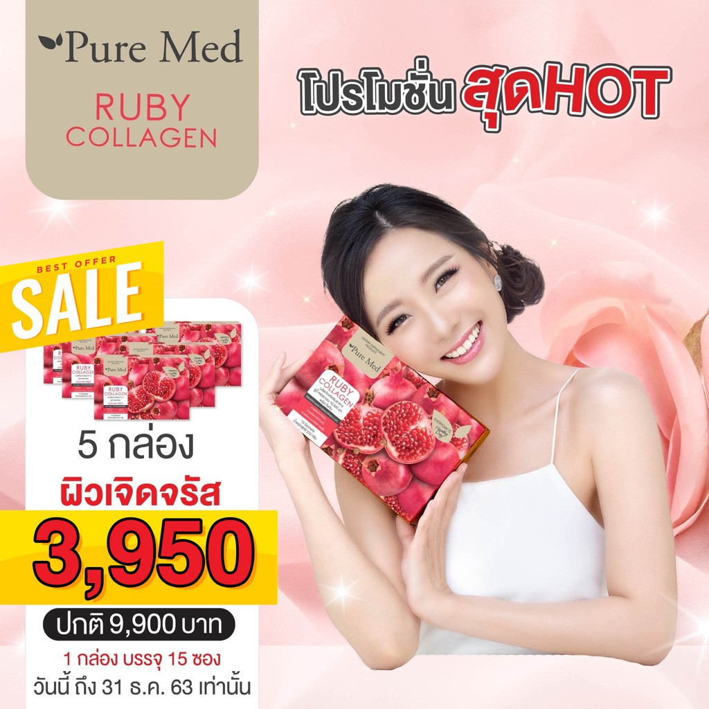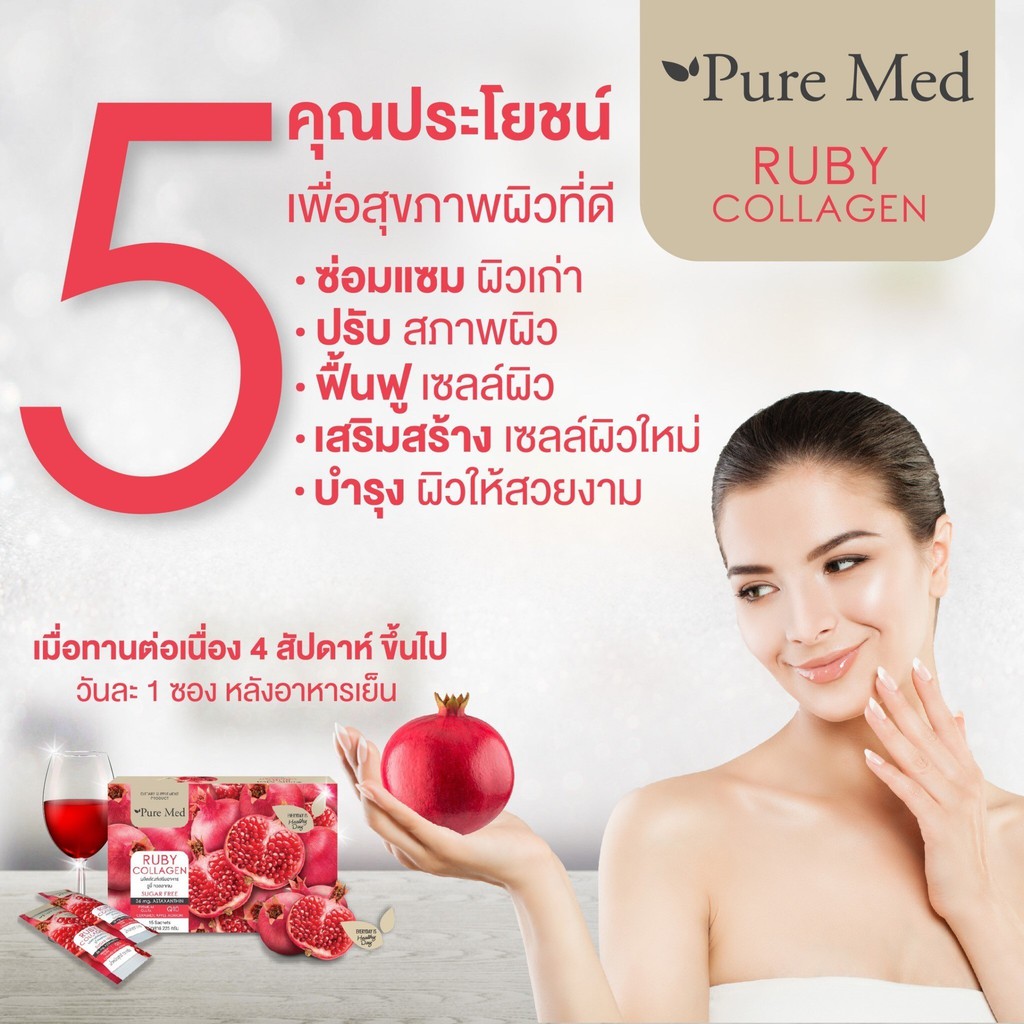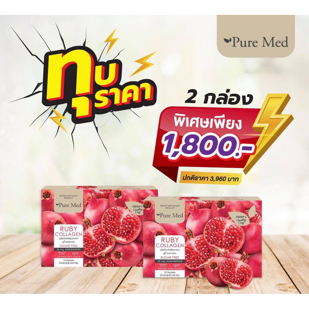 🍅Pure Med RUBY COLLAGEN 🍅 รูบี้ คอลลาเจน (ฟรี Ruby 1ซอง/กล่อง)Astaxanthin ผิวขาวใส ลดริ้วรอย ผิวแข็งแรง 1 กล่อง 15 ซอง
