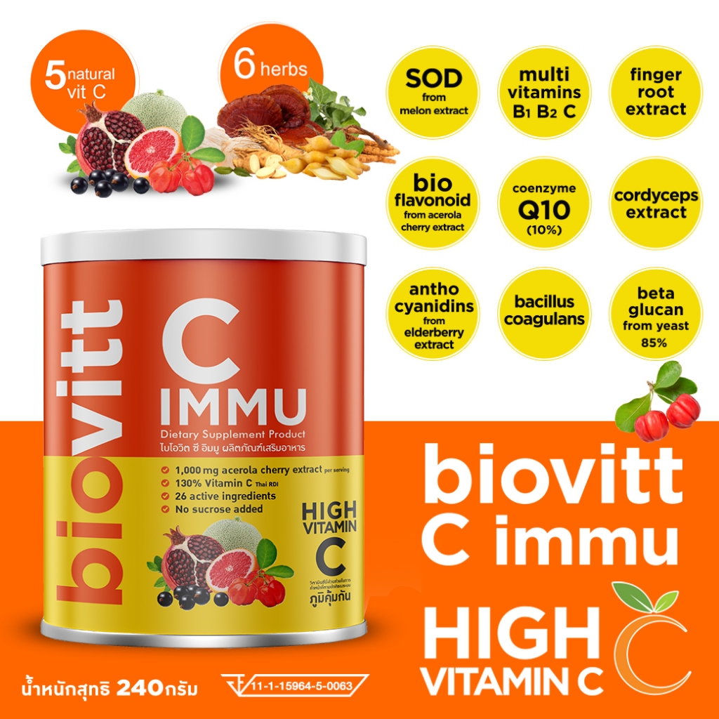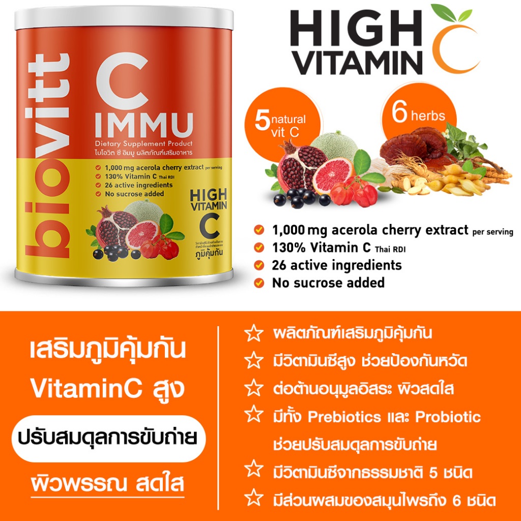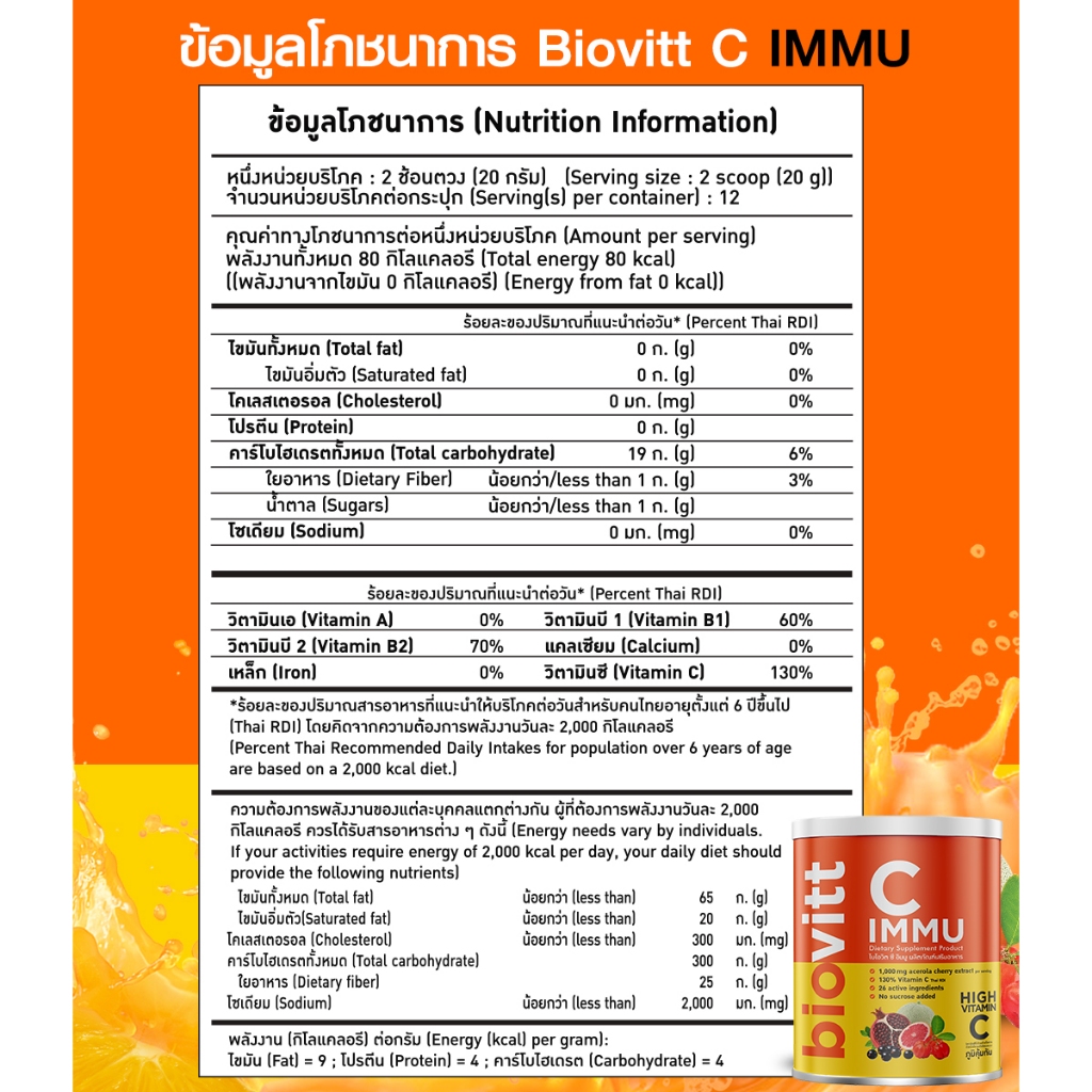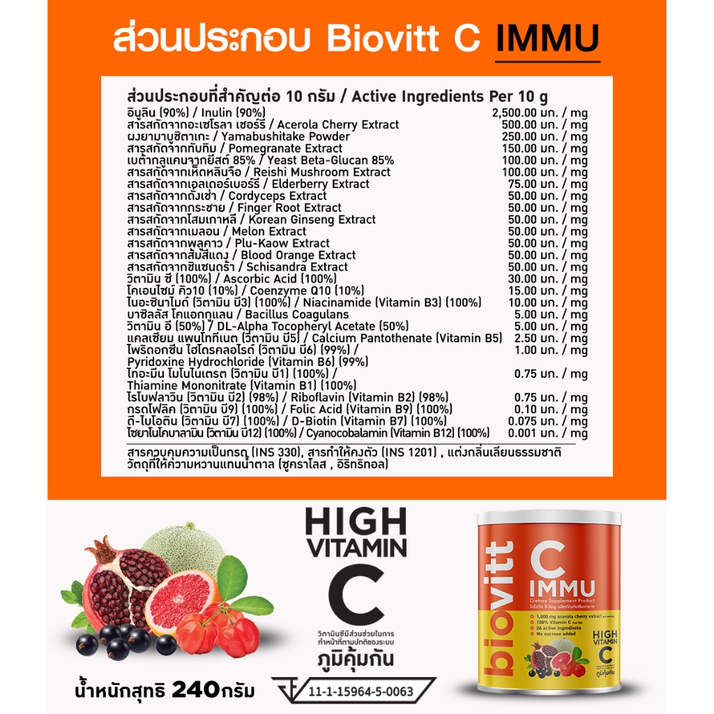 ✨Biovitt C IMMU ไบโอวิต วิตามินซี แบบผง ชงดื่ม เสริมภูมิ ผิวสวย ปรับสมดุลลำไส้ Vitamin C เข้มข้น