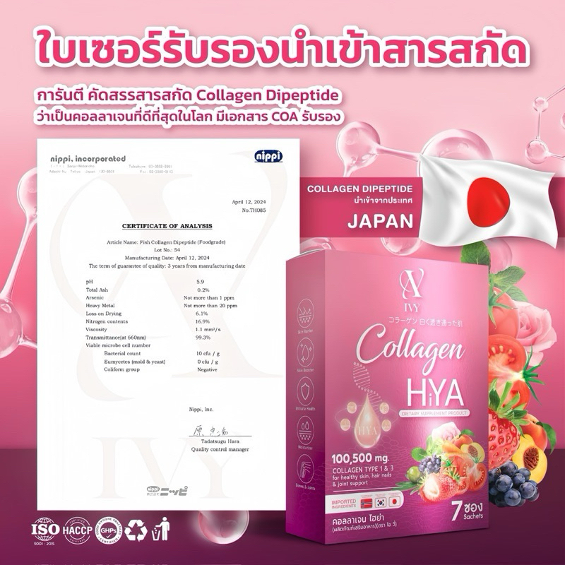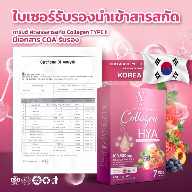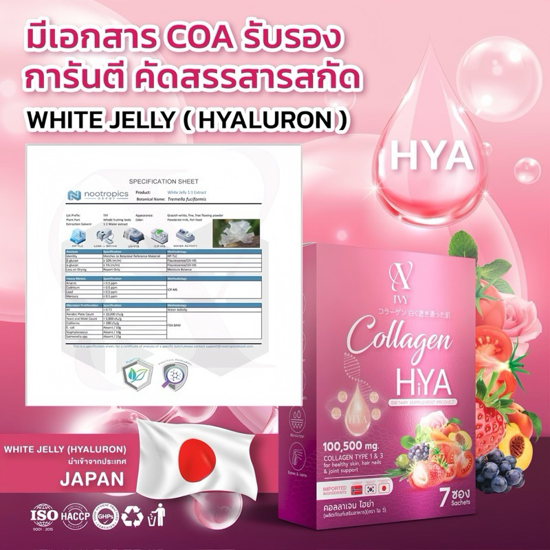 ไฮยา คอลลาเจน แบรนด์วีไวท์ ของแท้ร้านน้ำอ้อยวีไวท์ ivy collagen hya vwhite พร้อมส่ง
