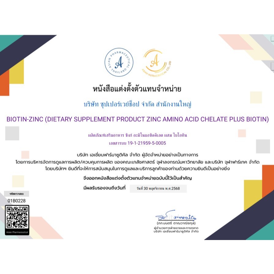 โปรโมชั่น 2 ขวด Biotin Zinc ไบโอทิน ซิงก์ คณะเภสัช จุฬา 90 เม็ด จำนวน 2 ขวด