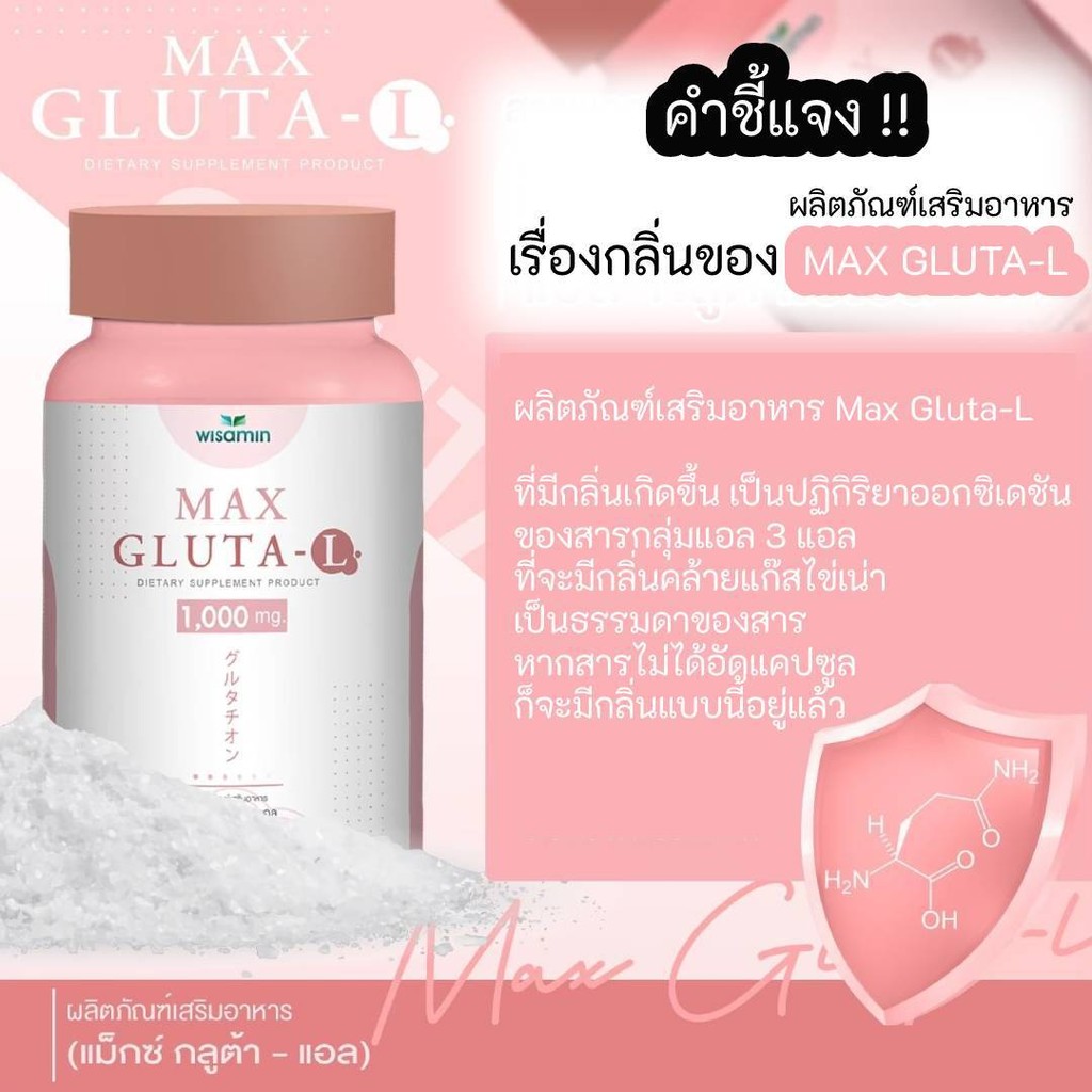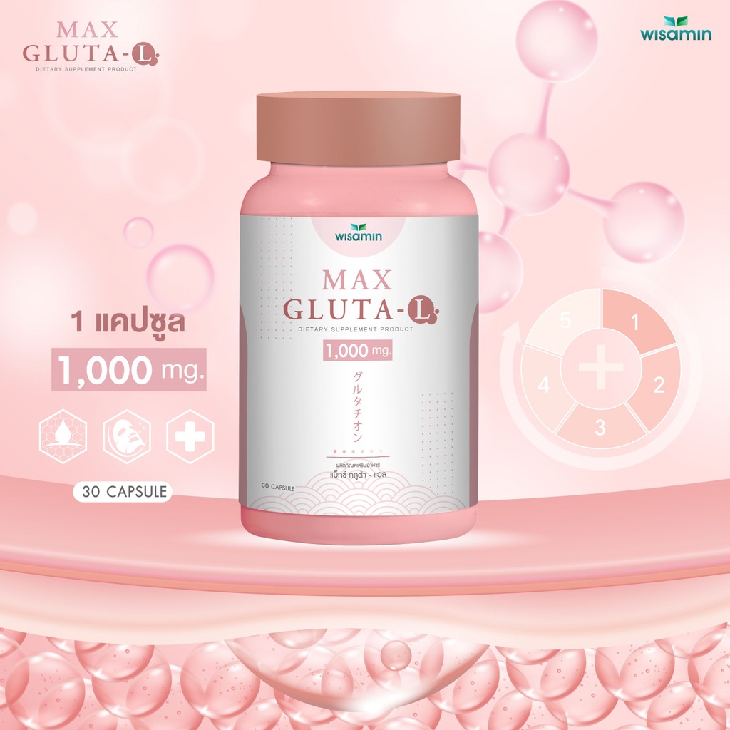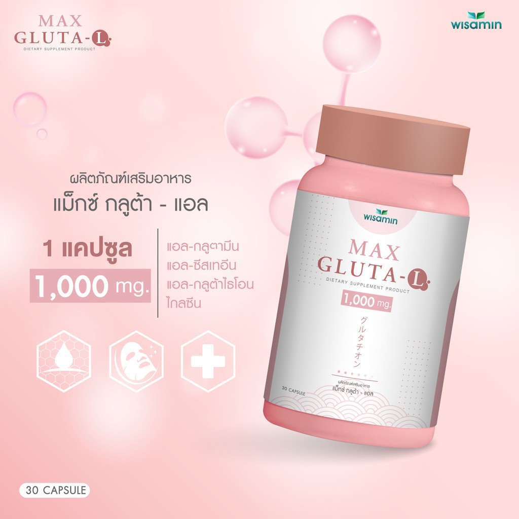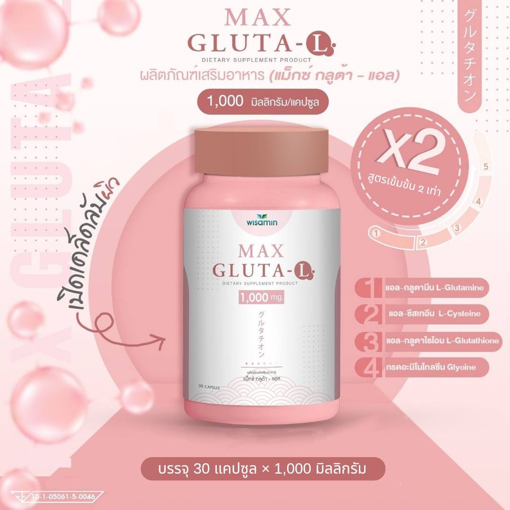 (แพคคู่ 2 กระปุก) แม็กซ์ กลูต้า-แอล MAX GLUTA-L 1,000 mg/แคปซูล (ตราวิษามิน) จำนวน 2 กระปุก รวม 60 แคปซูล