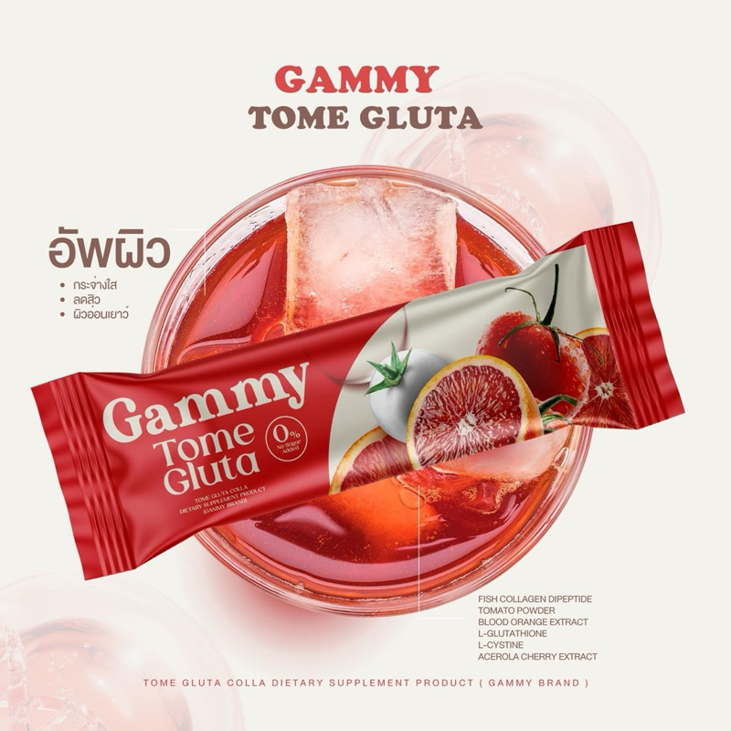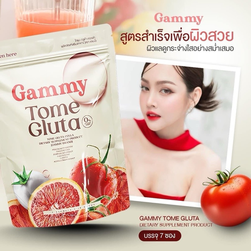 [1แถม1] ทานได้ 14 วัน น้ำมะเขือเทศ กลูต้า แกมมี่ Gammy Tome Gluta สูตรใหม่ แบบชงดื่ม ผิวขาวใส x2