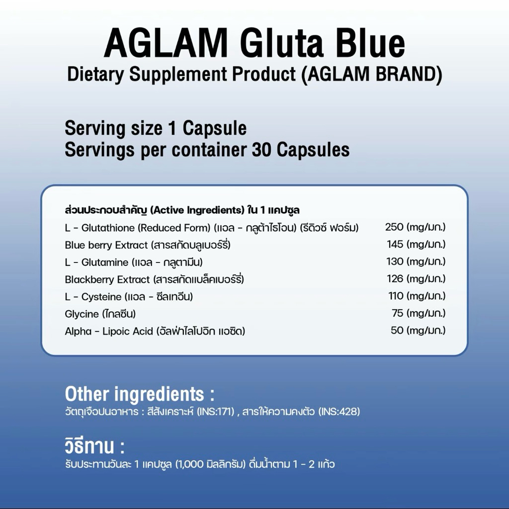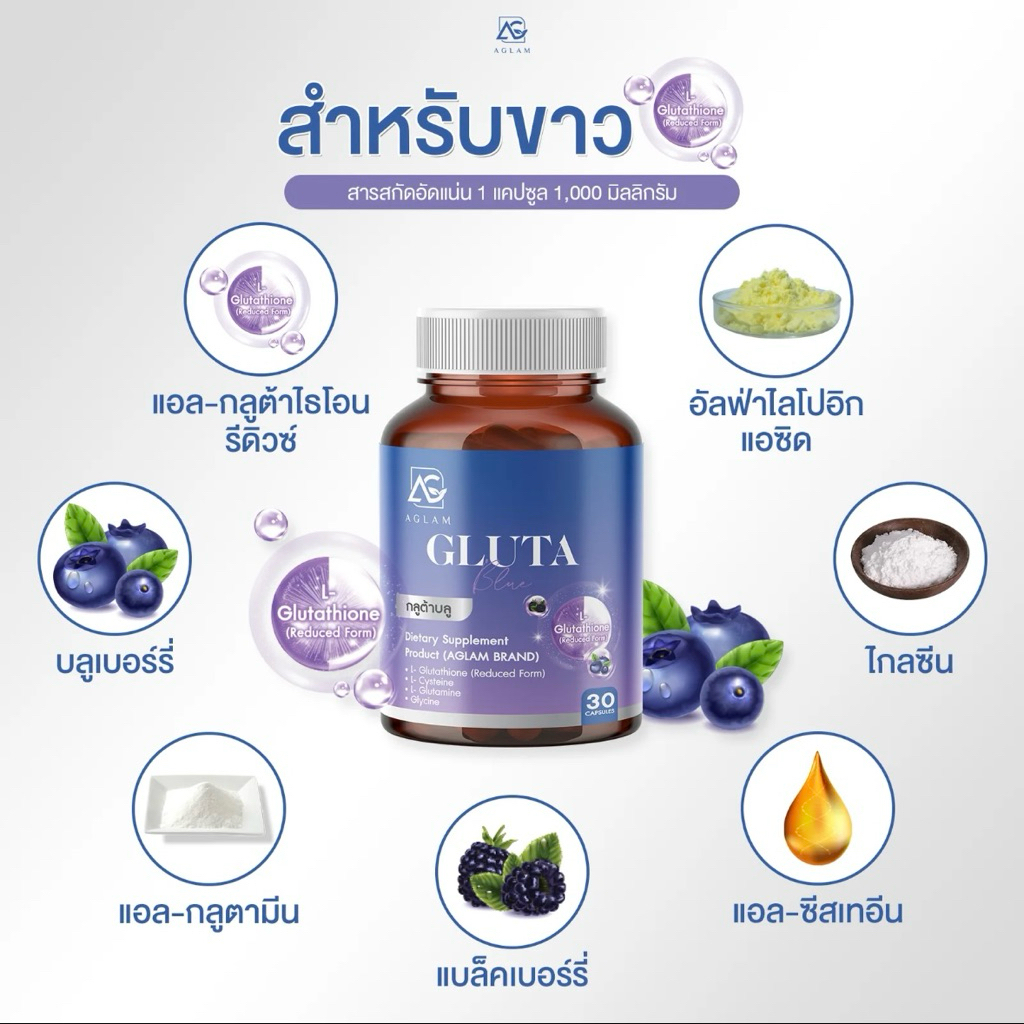 [ 1 แถม 1 ] AGLAM Gluta Blue – กลูต้า บลู อัดแน่นเม็ด 1,000 มก. บรรจุกระปุกล่ะ 30 แคปซูล