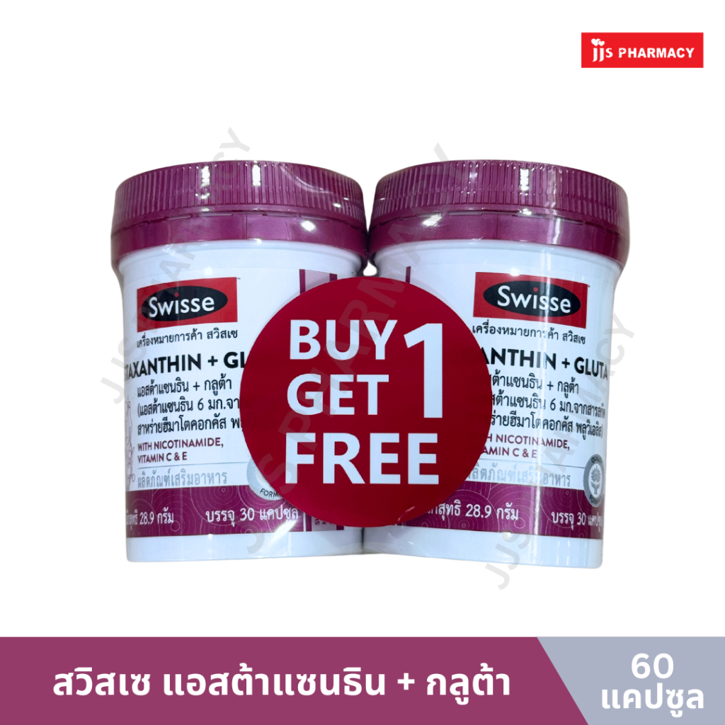 [1แถม1] Swisse Astaxanthin + Gluta สวิสเซ แอสต้าแซนธิน + กลูต้า 30 แคปซูล
