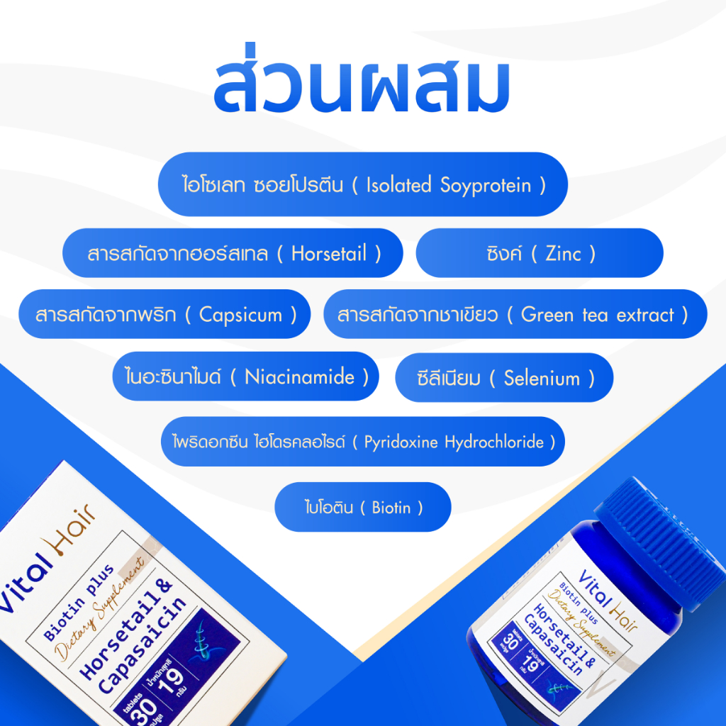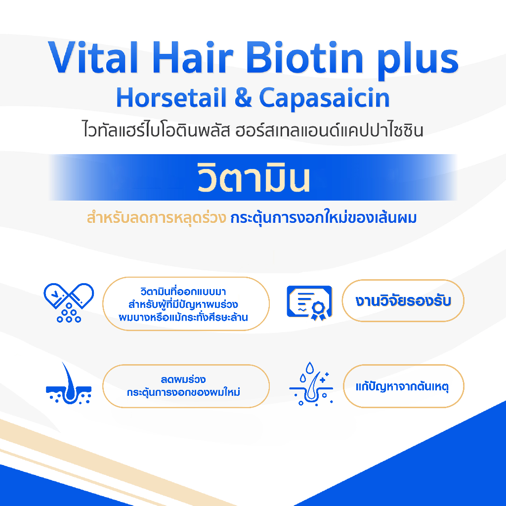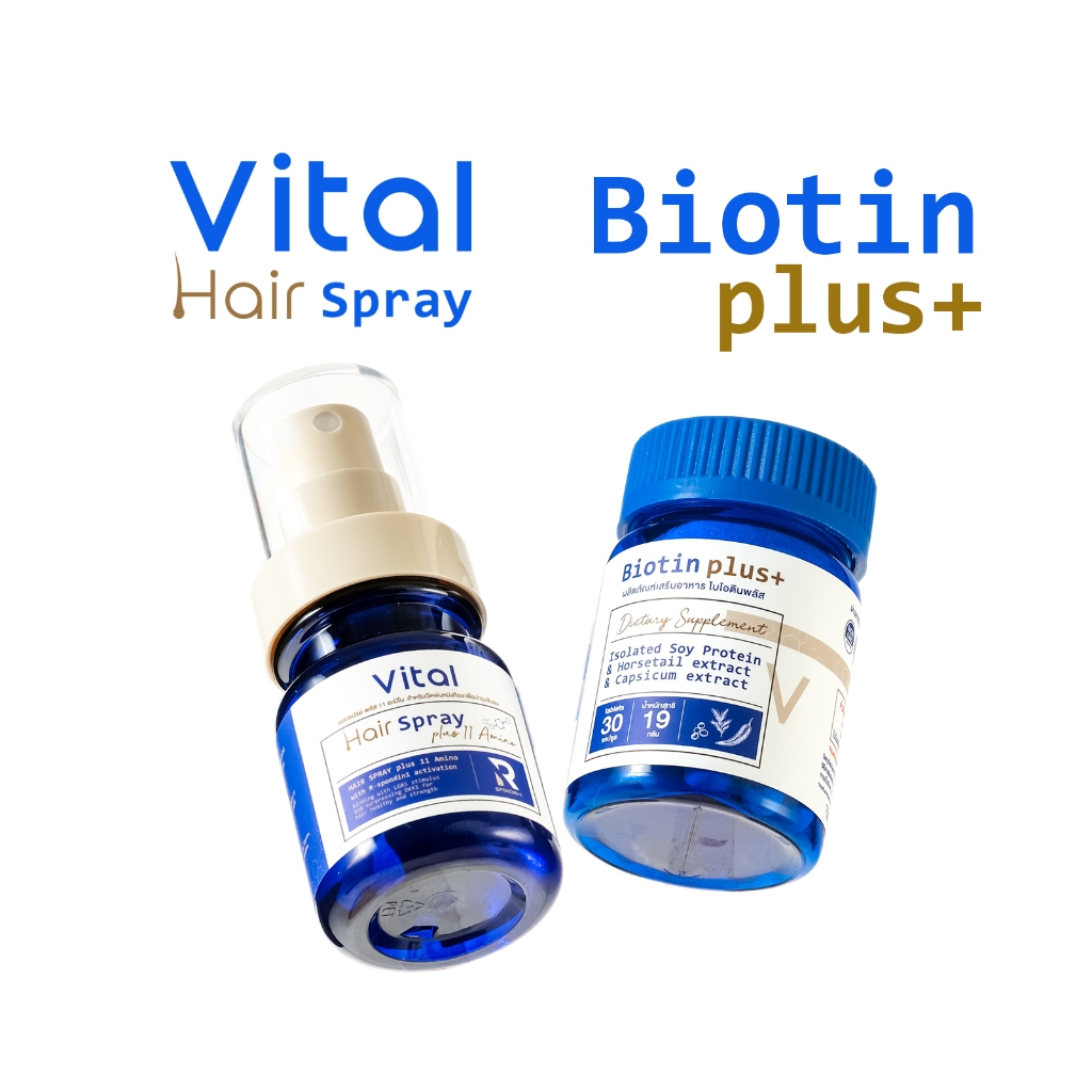 (แพ็คคู่) Vital แฮร์สเปรย์ พลัส 11 อะมิโน 50มล.+ไบโอตินพลัส ผลิตภัณฑ์เสริมอาหาร 30แคปซูล