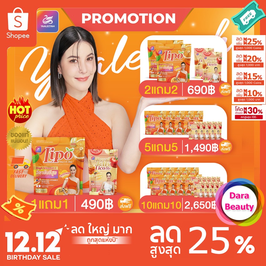 (โค้ดลด 232฿✅)Yaaleeyah Lipo Vita C & Zinc วิตามินซีพี่ธัญญ่า Liposomail Vitamin C ไลโปโซมอล วิตซี แถมฟรี!นมผึ้งต้านแก่