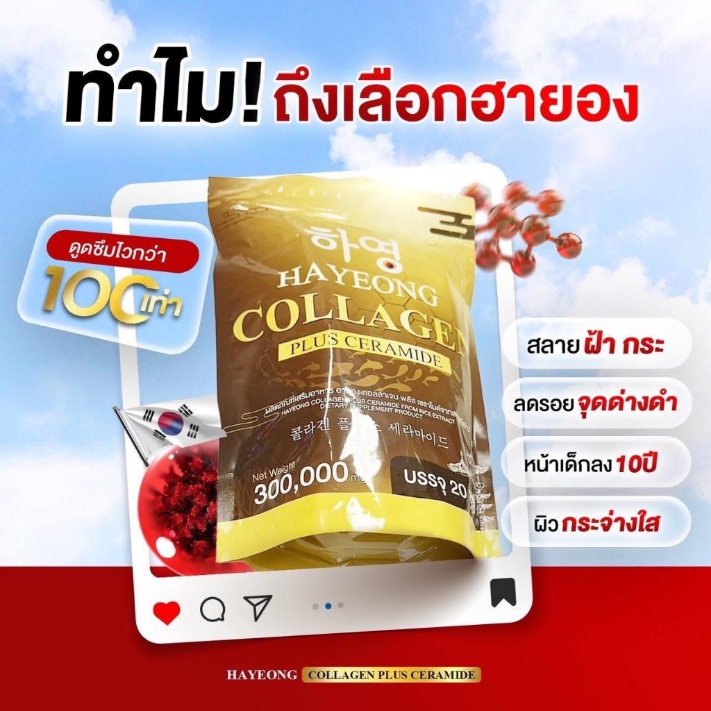(🌼แท้ / พร้อมส่ง🌼) Collagen Hayeong ฮายอง ⭐ ของแท้ สลายฝ้า กระ ลดจุดด่างดำ ลดริ้วรอย ชะลอวัย ผิวเด็กเด้ง อิ่มน้ำ