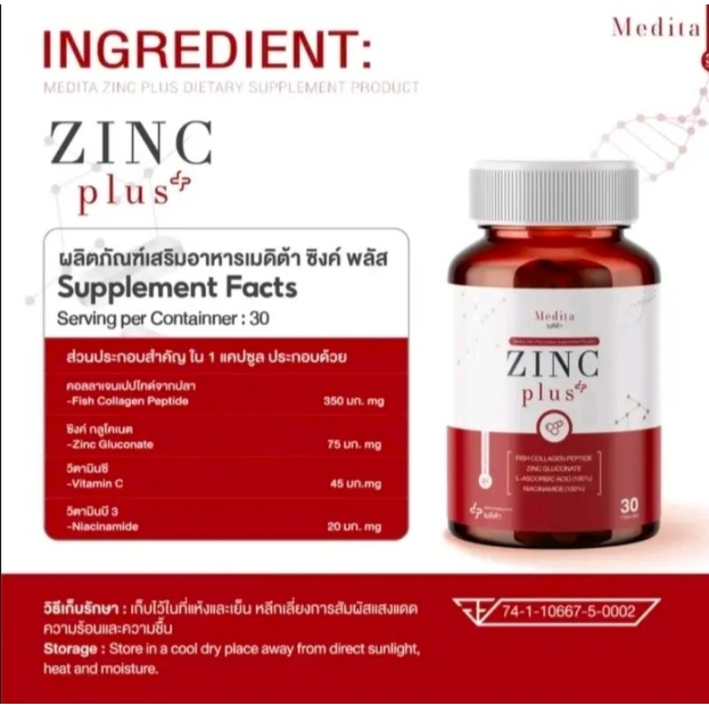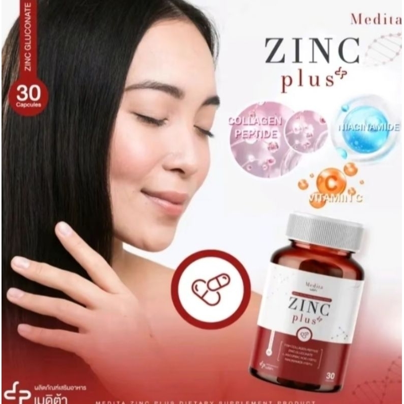 [ 1 ซอง ] สูตรใหม่ MEDITA ZINC PLUS Vitamin C+ Collagen เมดิต้า ซิงค์ พลัส 30 แคปซูล