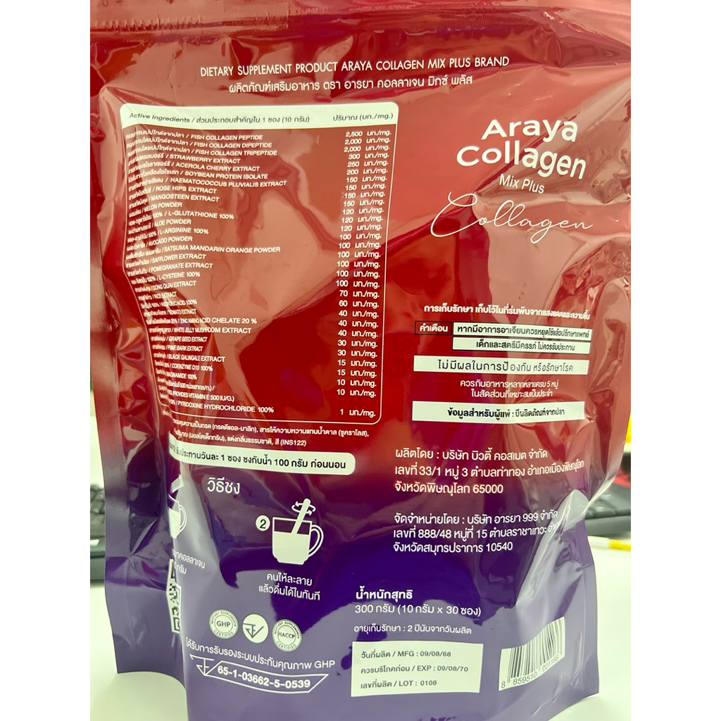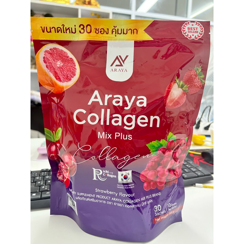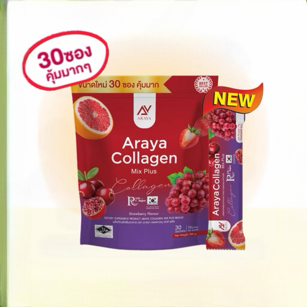 (แบบถุง30 ซอง)Araya collagen mix plus อารยาคอลลาเจน มิกซ์พลัส (1 ห่อ 30 ซอง) แพคเกจใหม่