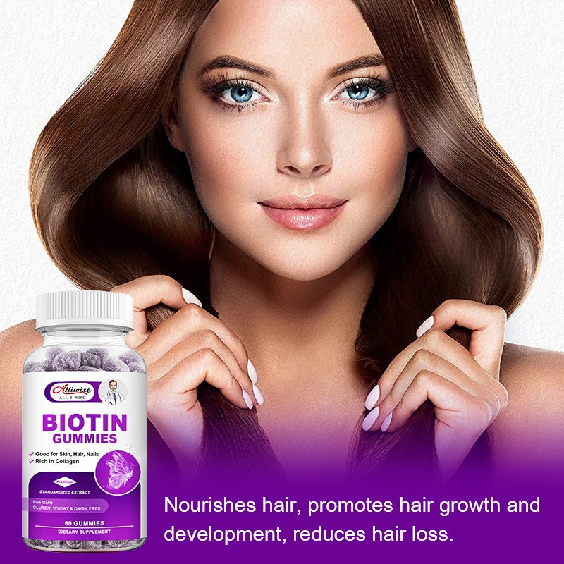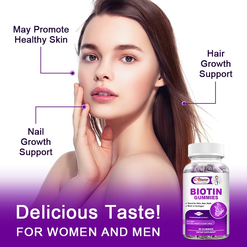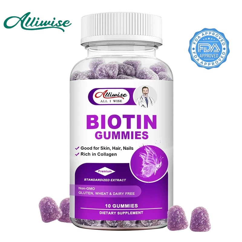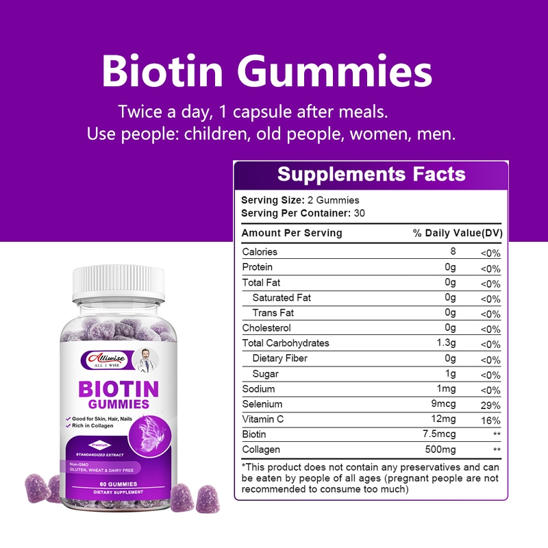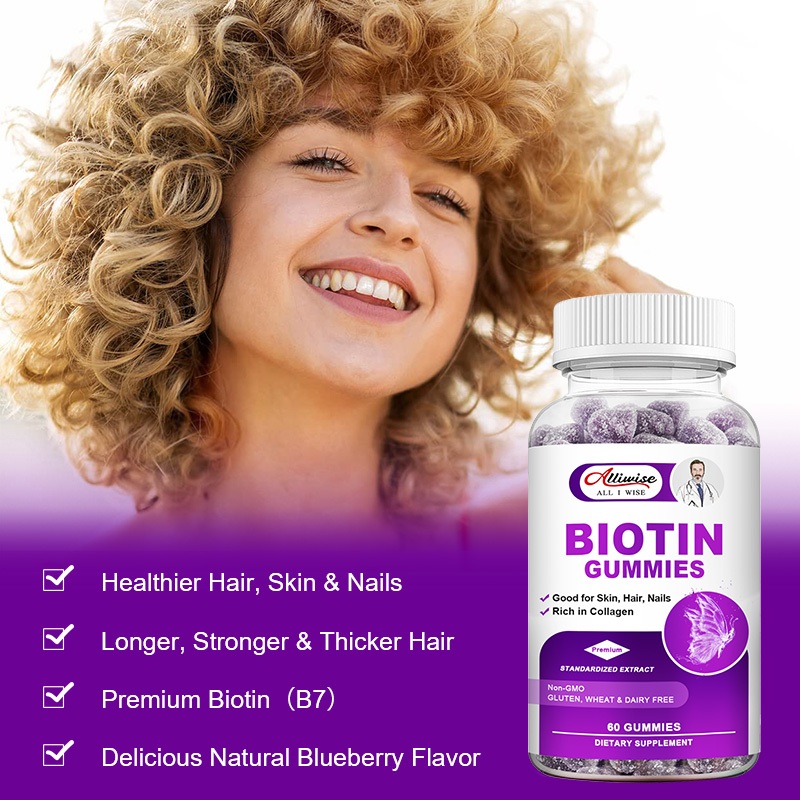 Alliwise Biotin Gummies อาหารเสริม วิตามิน A & E คอลลาเจน บํารุงเส้นผม