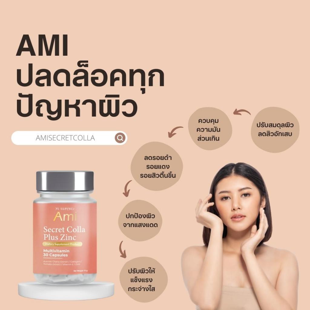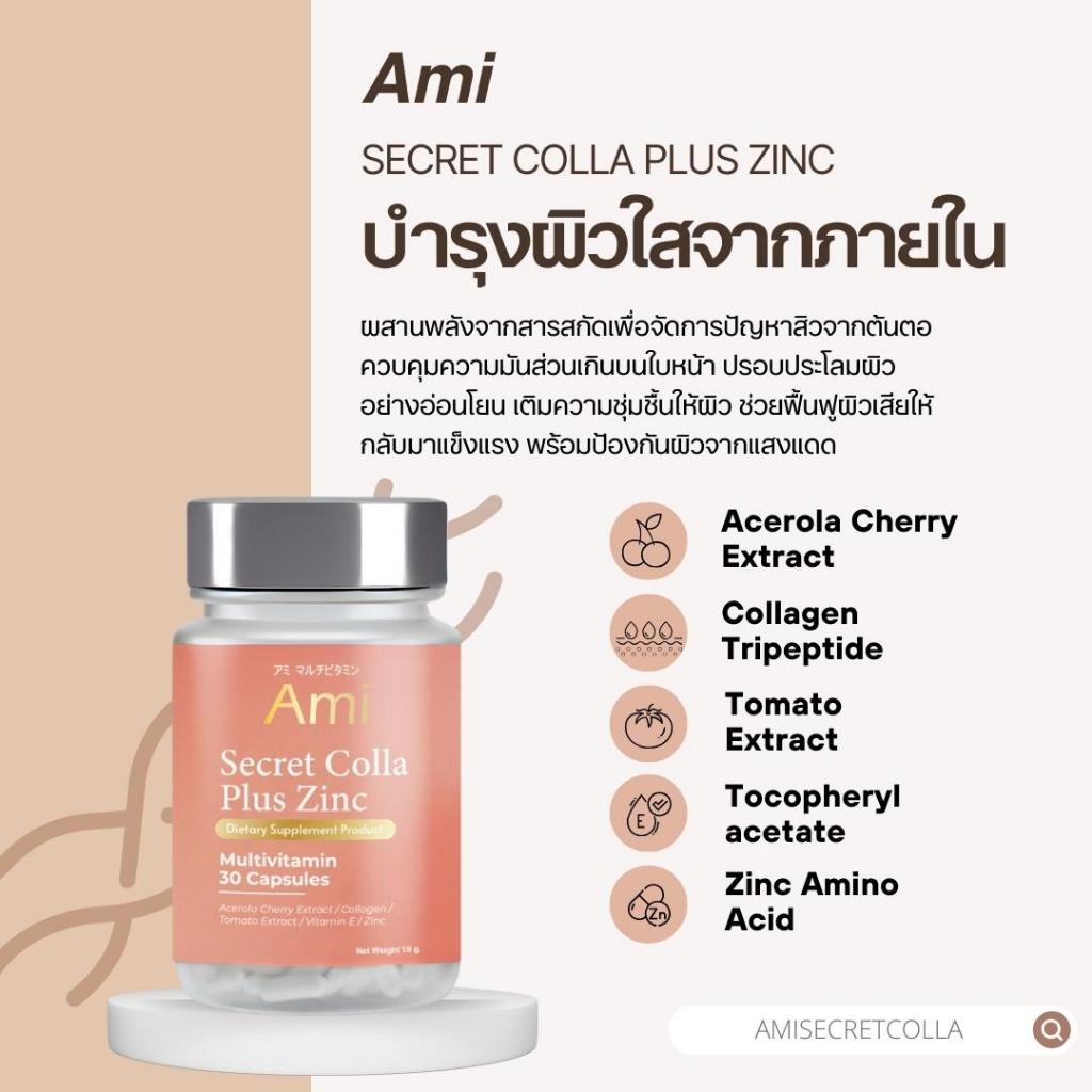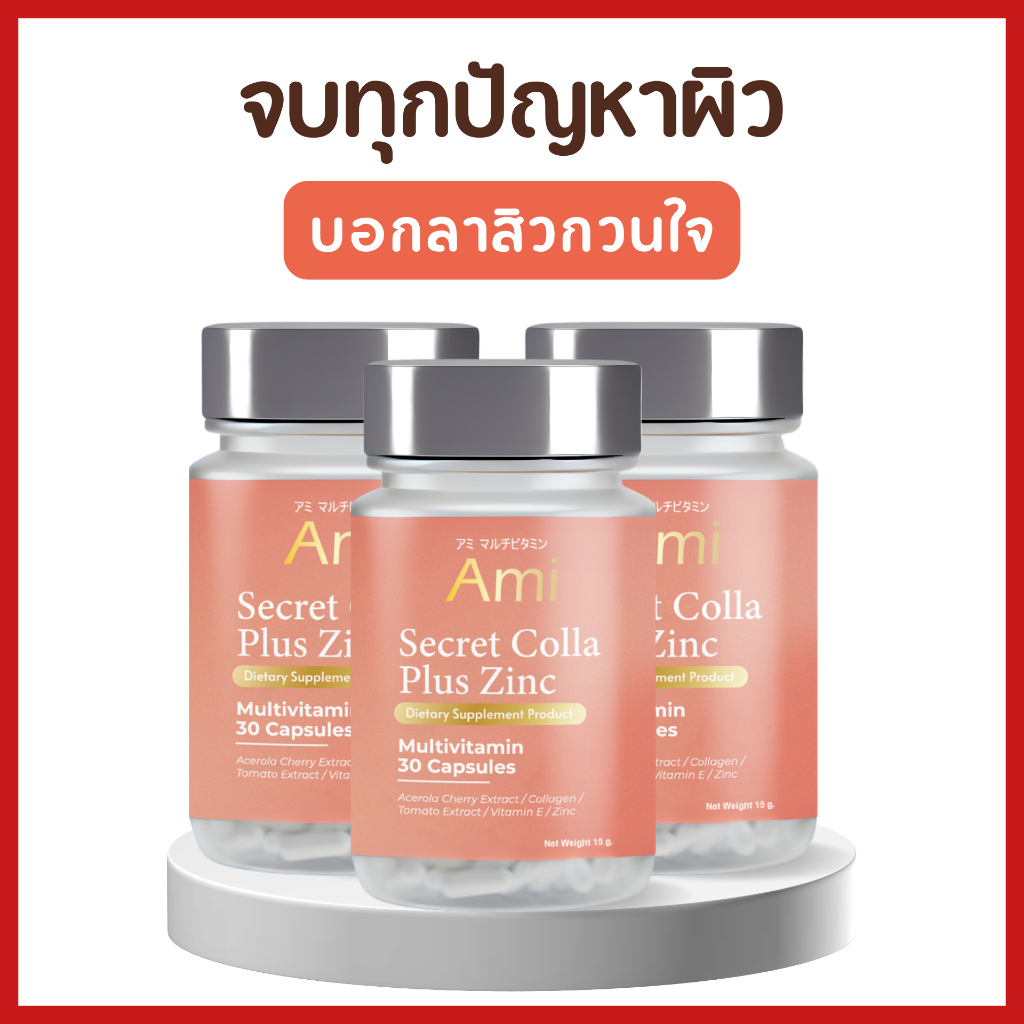 Ami Secret Colla Plus Zinc วิตามินลดสิว กำจัดสิวจากต้นตอ ปรับผิวฉ่ำโกลว์นุ่มชุ่มชื่น โปร 3 ขวด