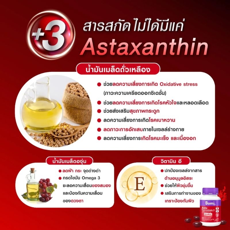 Bomi AstaReal Concentrate 6mg. (30 Capsules) แอสตาแซนธิน ผิวกระชับ เนียนนุ่ม ชุ่มชื้น ลดความหมองคล้ำ