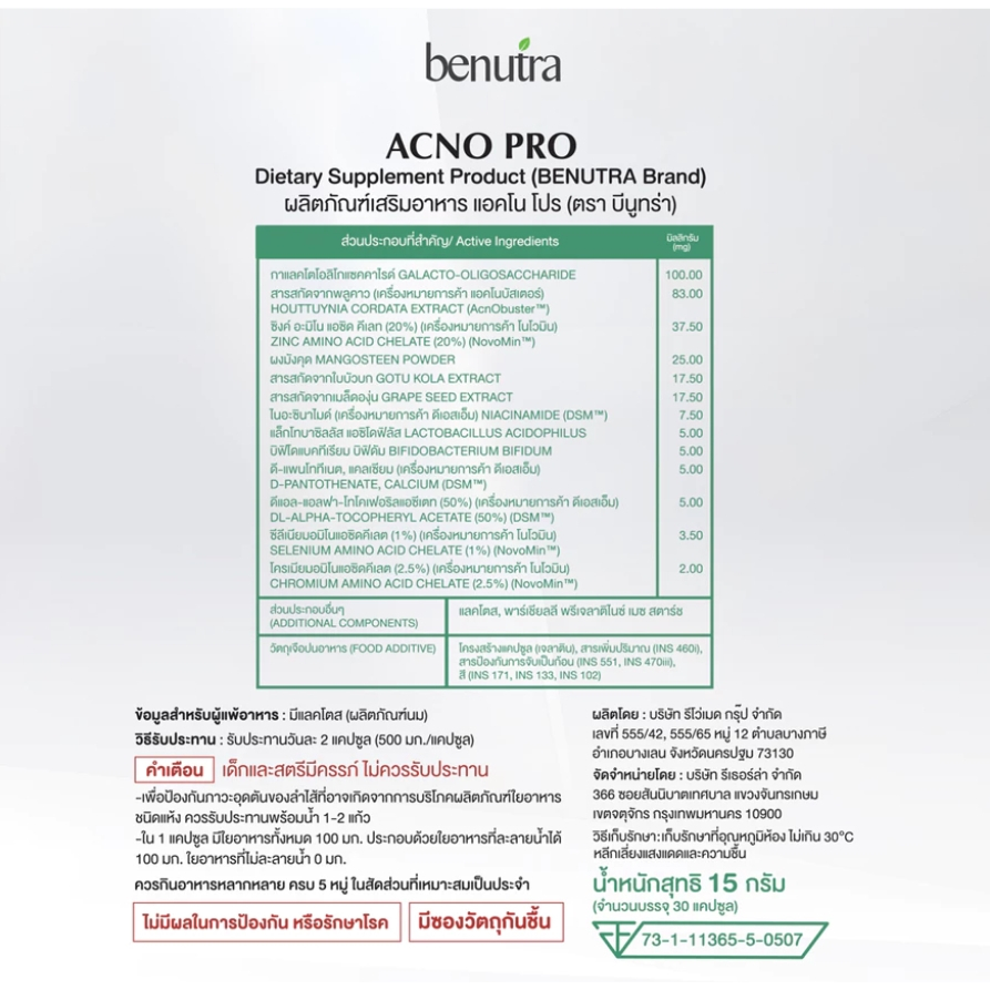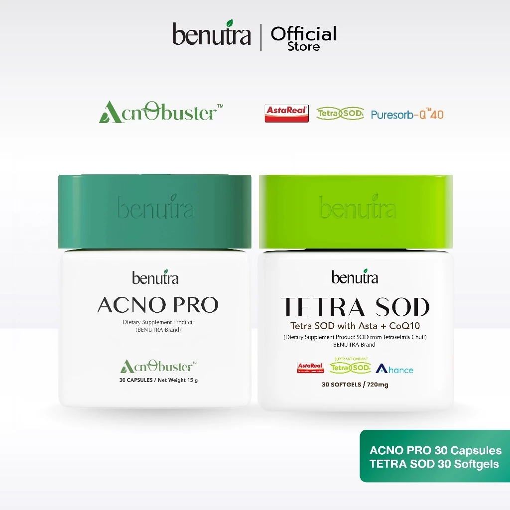 BENUTRA – วิตามินจบปัญหาสิว Acno Pro อาหารเสริม ฝาเขียวจบวงจรสิว ดูแลผิวจากภายใน AcnObuster 1 กล่อง 30 ซอฟเจล