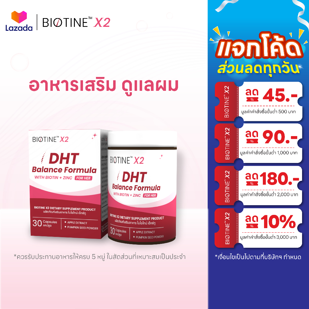 BIOTINE X2 (ไบโอไทน์ เอ็กทู) แก้ผมเสียรุนแรง ร่วงหนัก ผมพังจากเคมี ฟื้นคืนสภาพผม ขนาด 30 แคปซูล