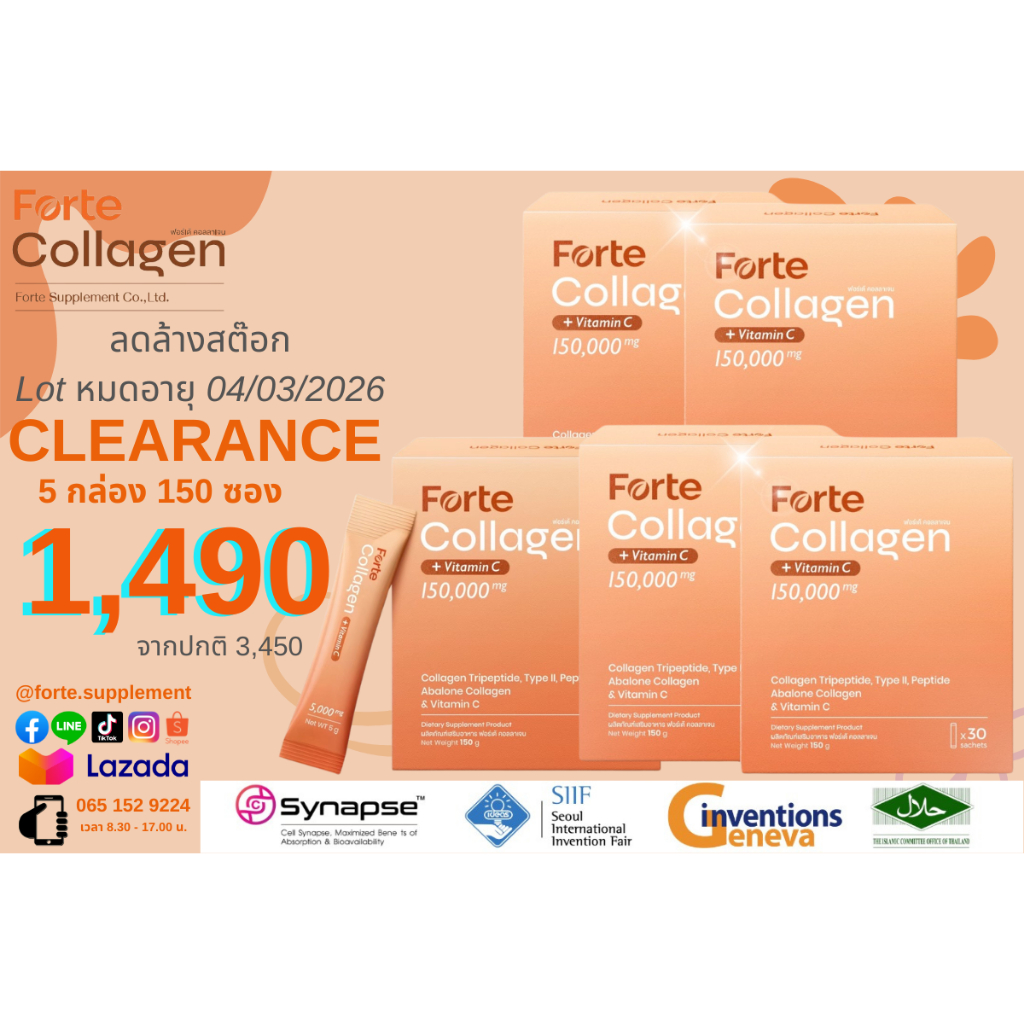 5 กล่อง 150 ซอง ผลิตภัณฑ์ฟอร์เต้ คอลลาเจน Forte Collagen Clearance