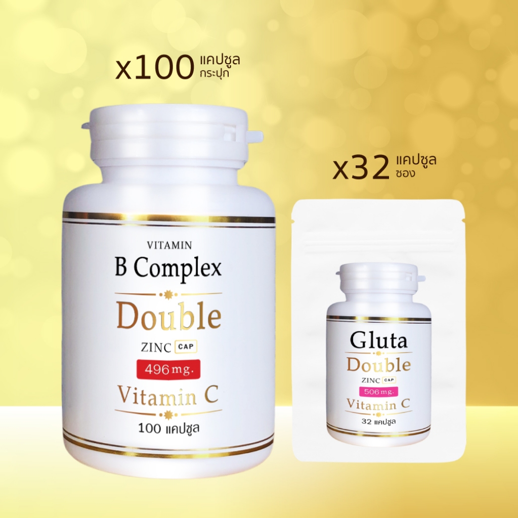 (1แถม1) บีคอมเพล็กซ์ + กลูต้าดับเบิ้ลซิงค์ (100แคปซูล/กป) แถม (32แคปซูล/ซอง) (บี 100 x1 + กลูต้า ซอง x1)