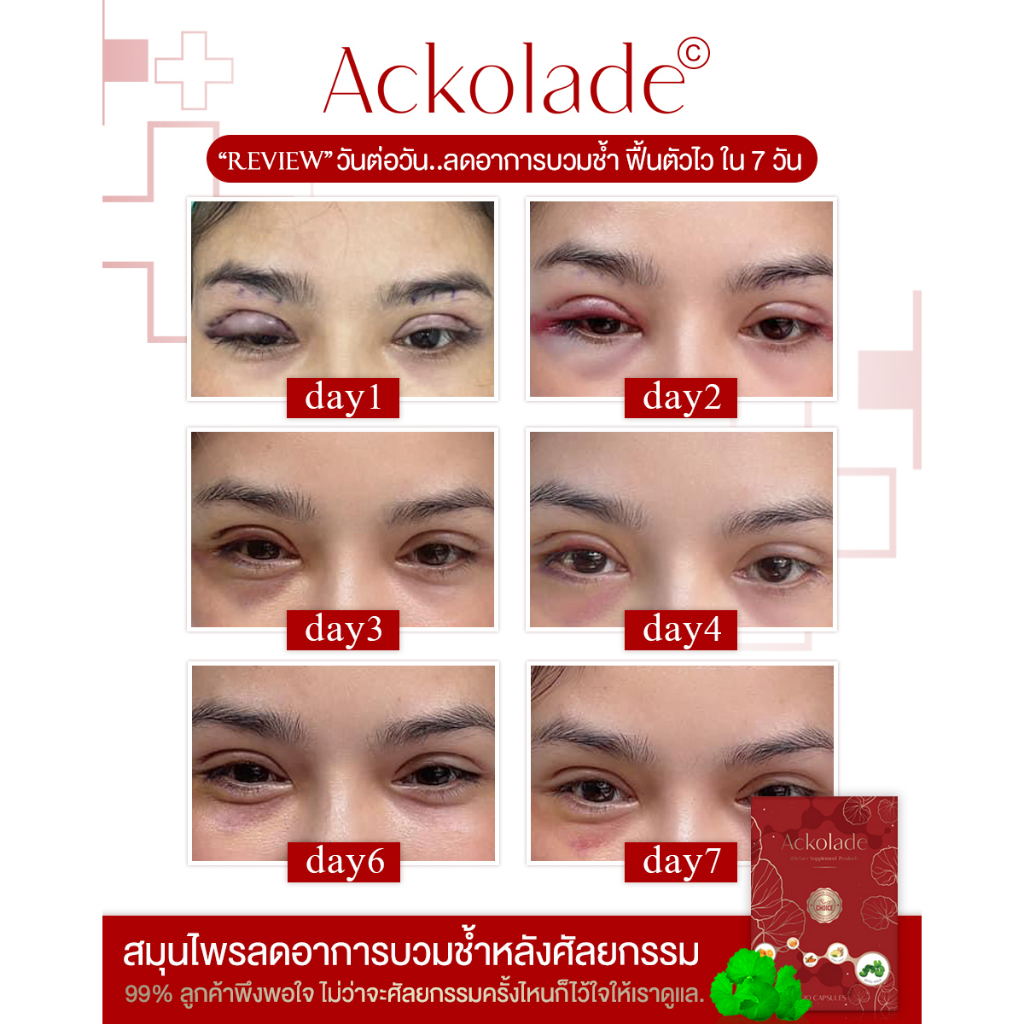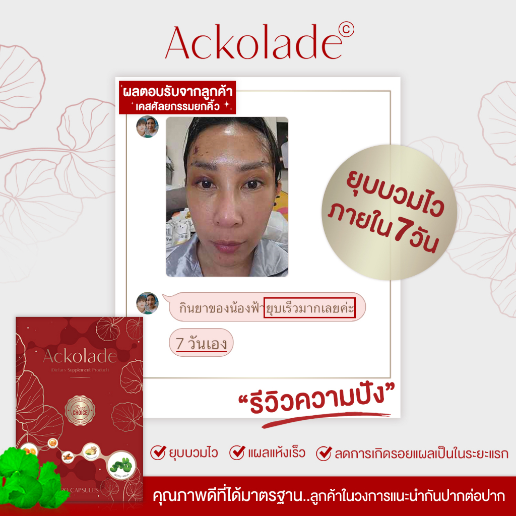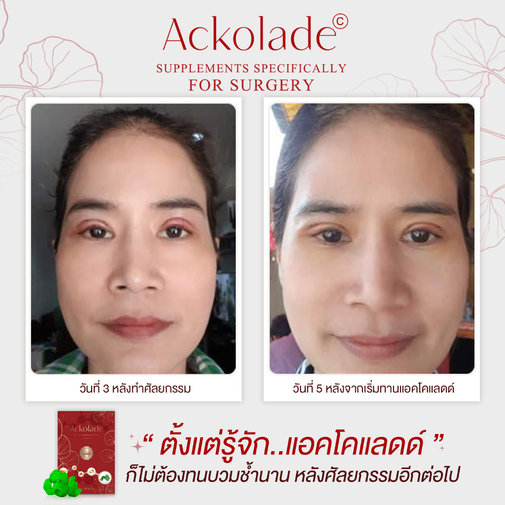 {พร้อมส่ง}Ackoladeอาหารเสริมลดอาการบวมช้ำหลังทำศัลยกรรม ลดบวม ลดช้ำ ลดการอักเสบ สมานแผล ทานหลังศัลยกรรม