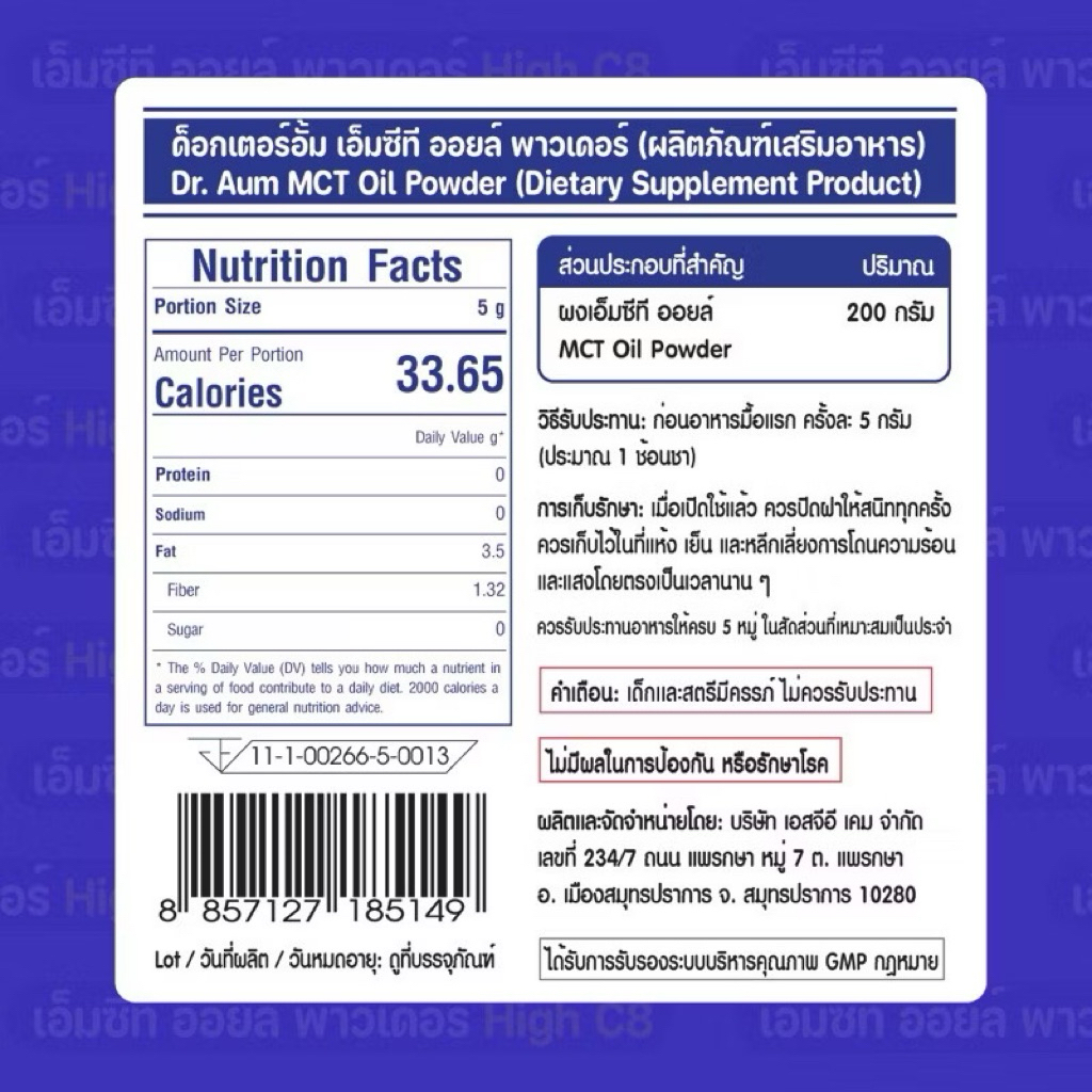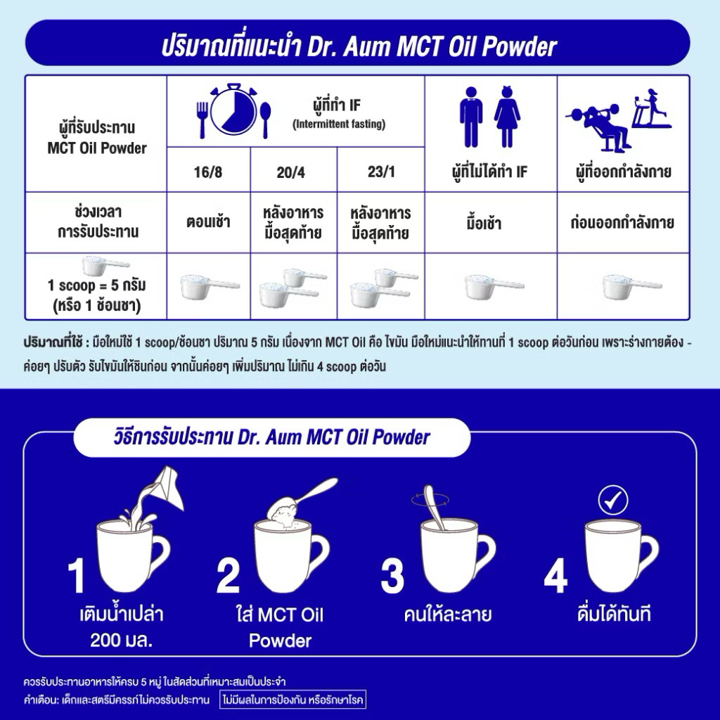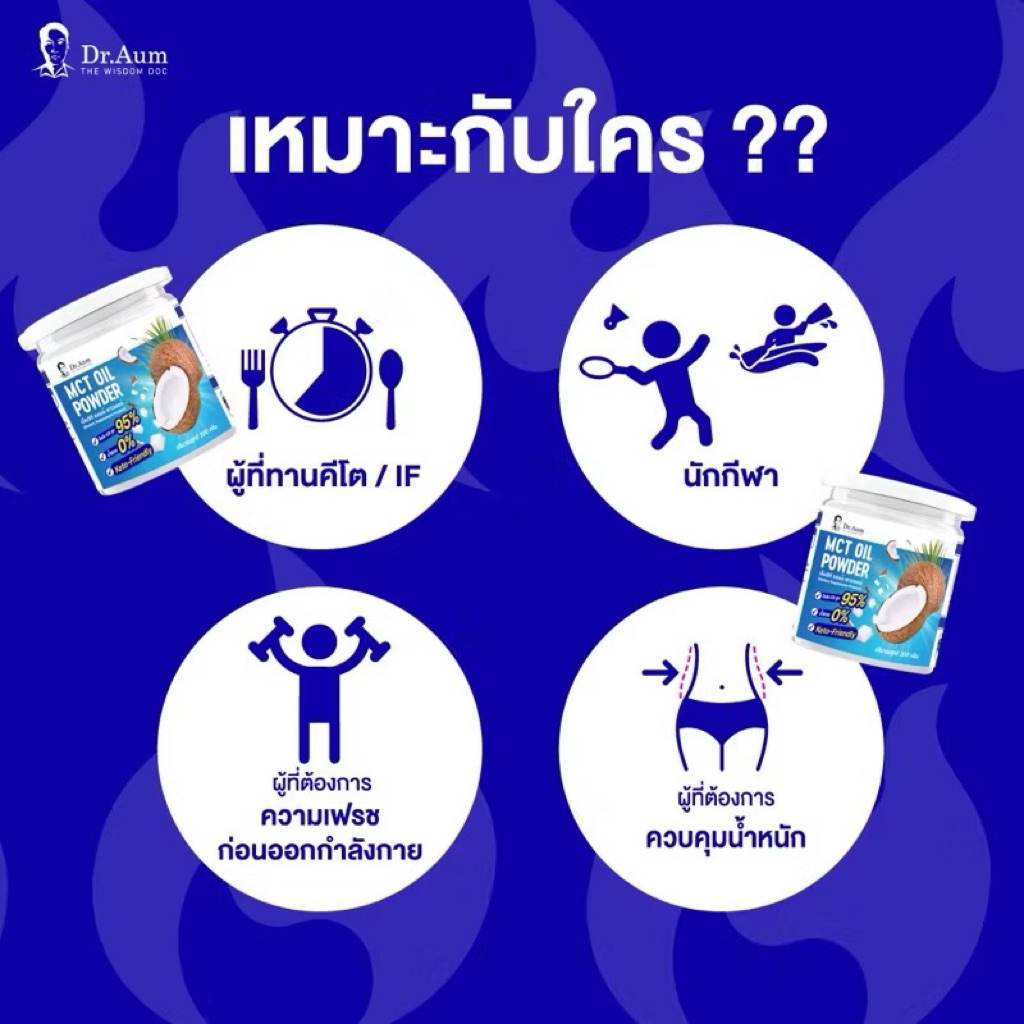 *ขายดี*Dr.Aum C8 95% MCT Oil Powder 200g สูตรไม่มีน้ำตาล | ผง เอ็มซีที ออยล์ ซี 8 จากมะพร้าว
