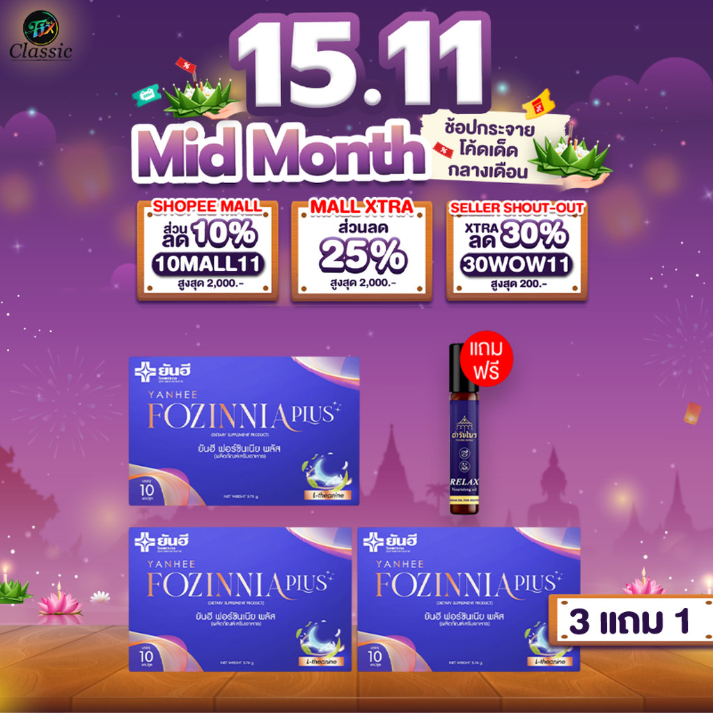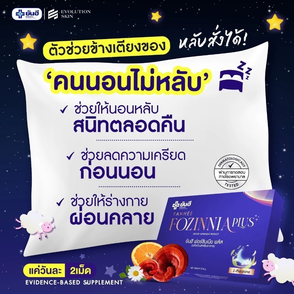 3 กล่อง Yanhee Fozinnia Plus ยันฮี ฟอร์ซินเนีย พลัส วิตามินช่วยนอนหลับ หลับสนิทเต็มอิ่ม ลดอ่อนเพลีย