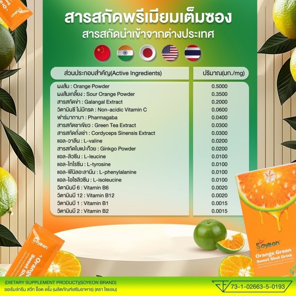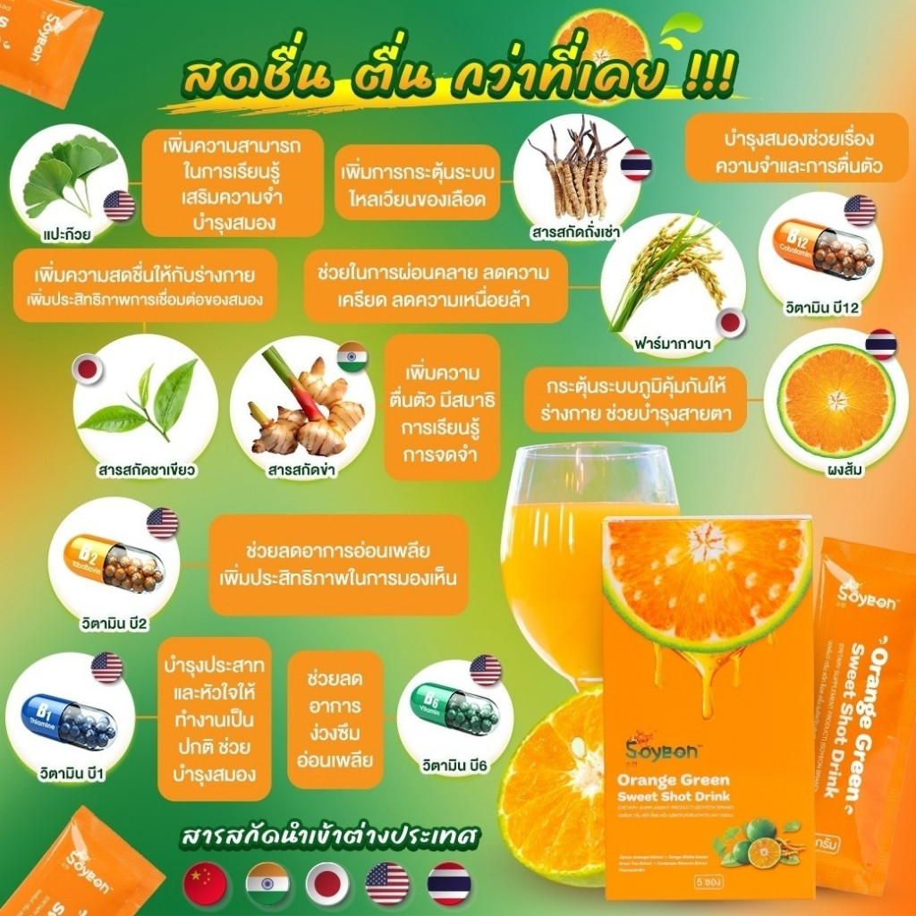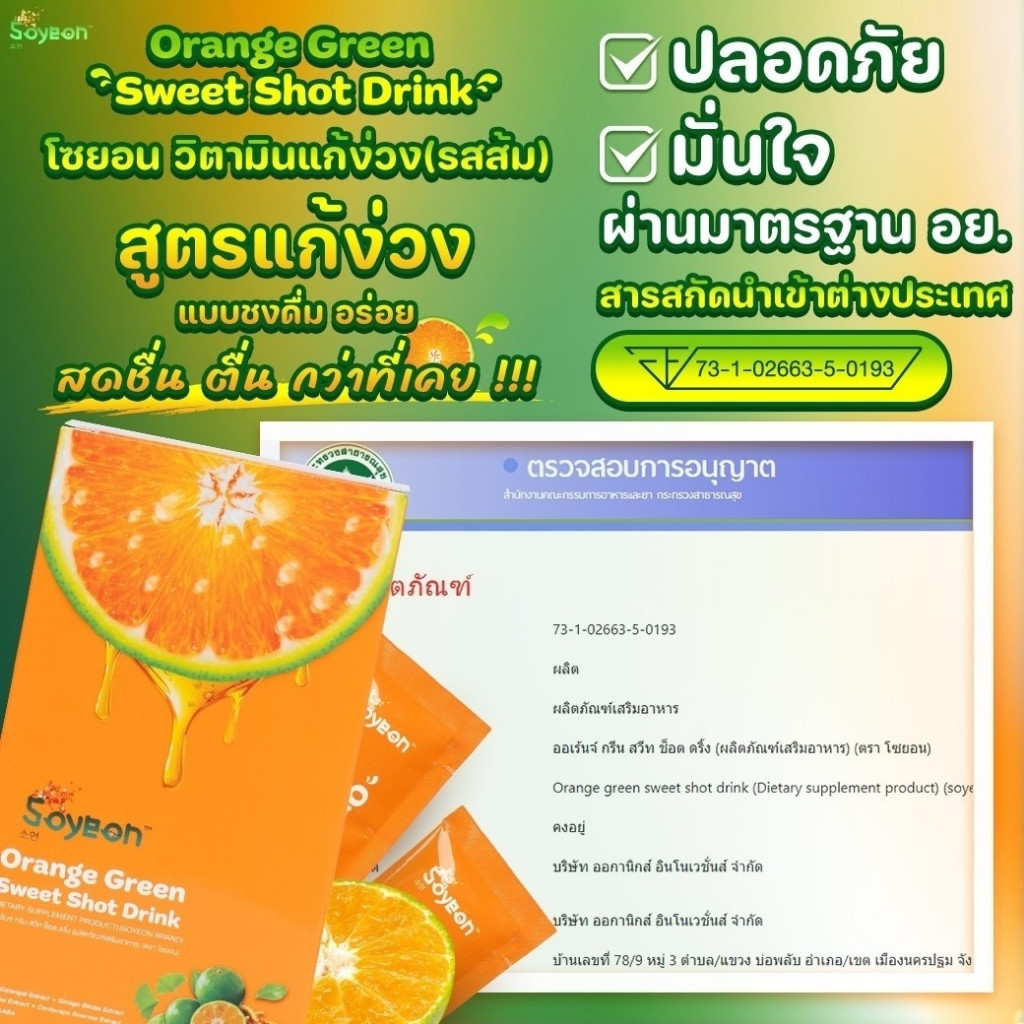 3 กล่อง โซยอน Soyeon orange green Sweet Shot Drink วิตามินแก้ง่วง รสส้ม ชงดื่ม ตื่นตัว ไม่มีน้ำตาล