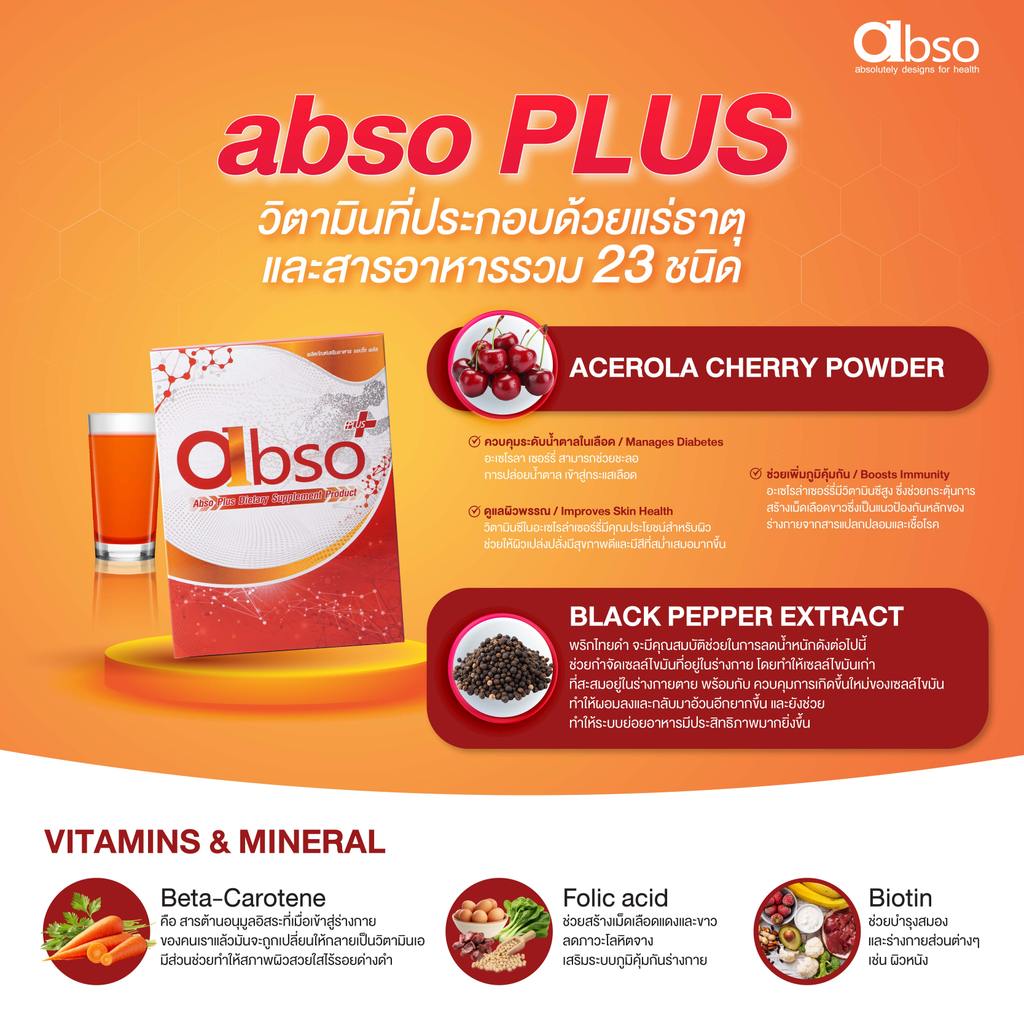 abso Plus (2 กล่อง) ส่งตรงวิตามินให้ร่างกาย 3-5 เท่า ผิว เล็บ ผม แข็งแรง