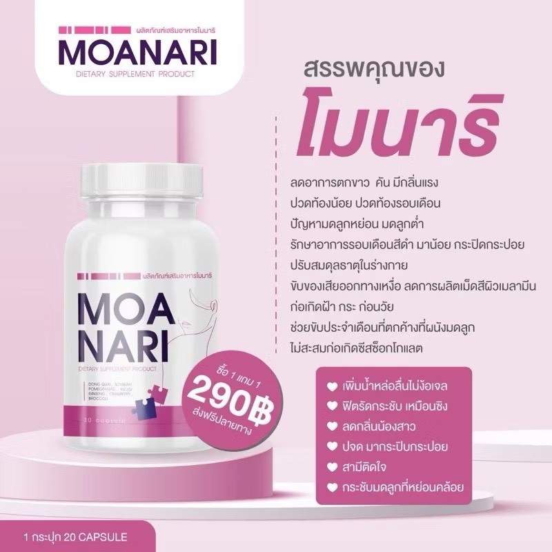 1 แถม 1) โมนาริ MOANARI อาหารเสริมบำรุงสุขภาพผู้หญิง บรรจุ 30 แคปซูล