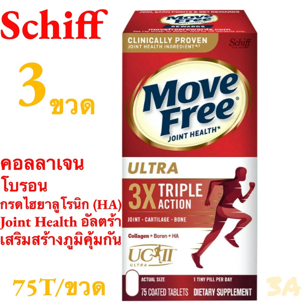 3 ขวด Move Free Joint Health Ultra Triple action 75เม็ด วิตามินบำรุงกระดูก ข้อต่อ(Schiff)