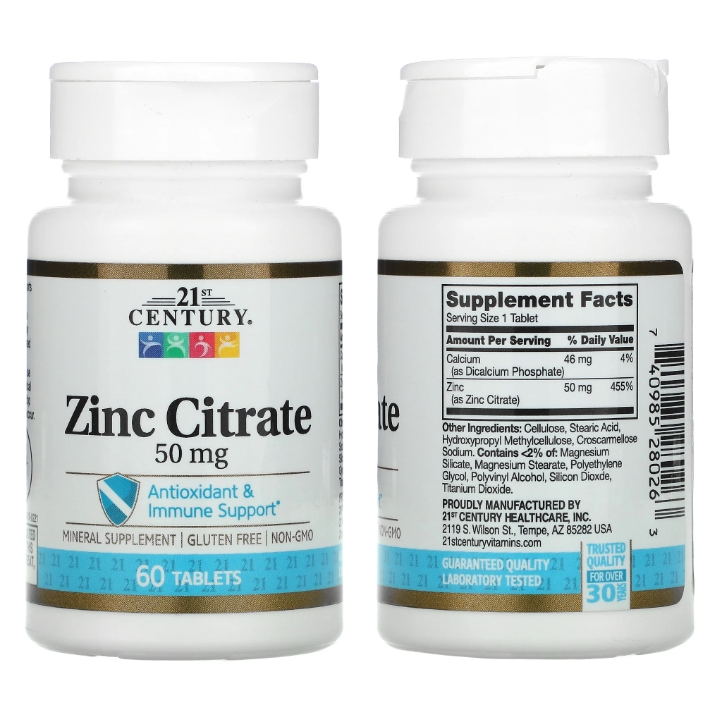 21st Century, Zinc, 50 mg, 110 Tablets สนับสนุนระบบภูมิคุ้มกัน สุขภาพ ผม ผิว เล็บ ป้องกันสิว