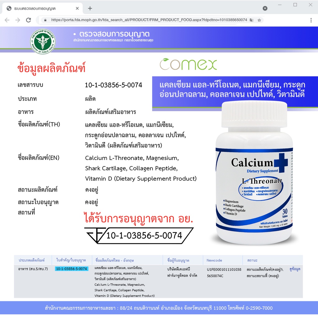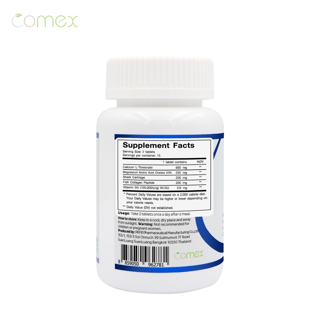 Calcium L-Threonate x 1 ขวด Magnesium Shark Cartilage Comex แคลเซียม แอลทรีโอเนต กระดูกอ่อนปลาฉลาม แมกนีเซียม วิตามินดี