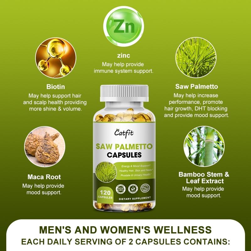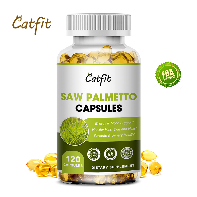 Catfit Saw Palmetto capsules ซอว์ปาล์มเมตโต ต่อมลูกหมาก สุขภาพทางเดินปัสสาวะ ผม ผิว เล็บ พลังงาน อารมณ์ 120 ชิ้น