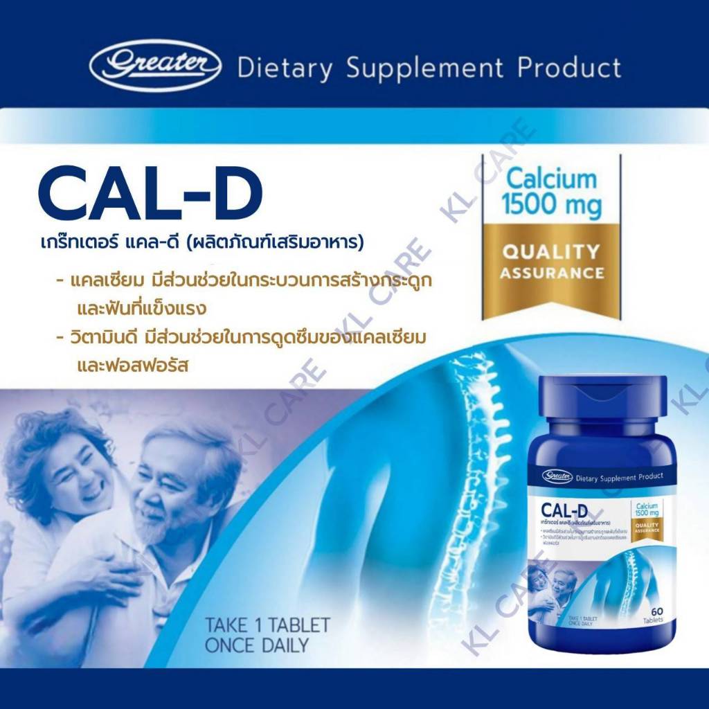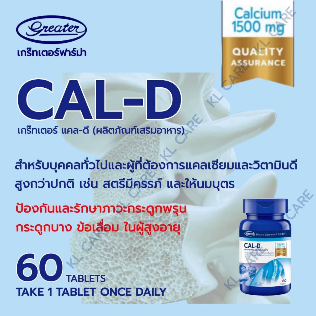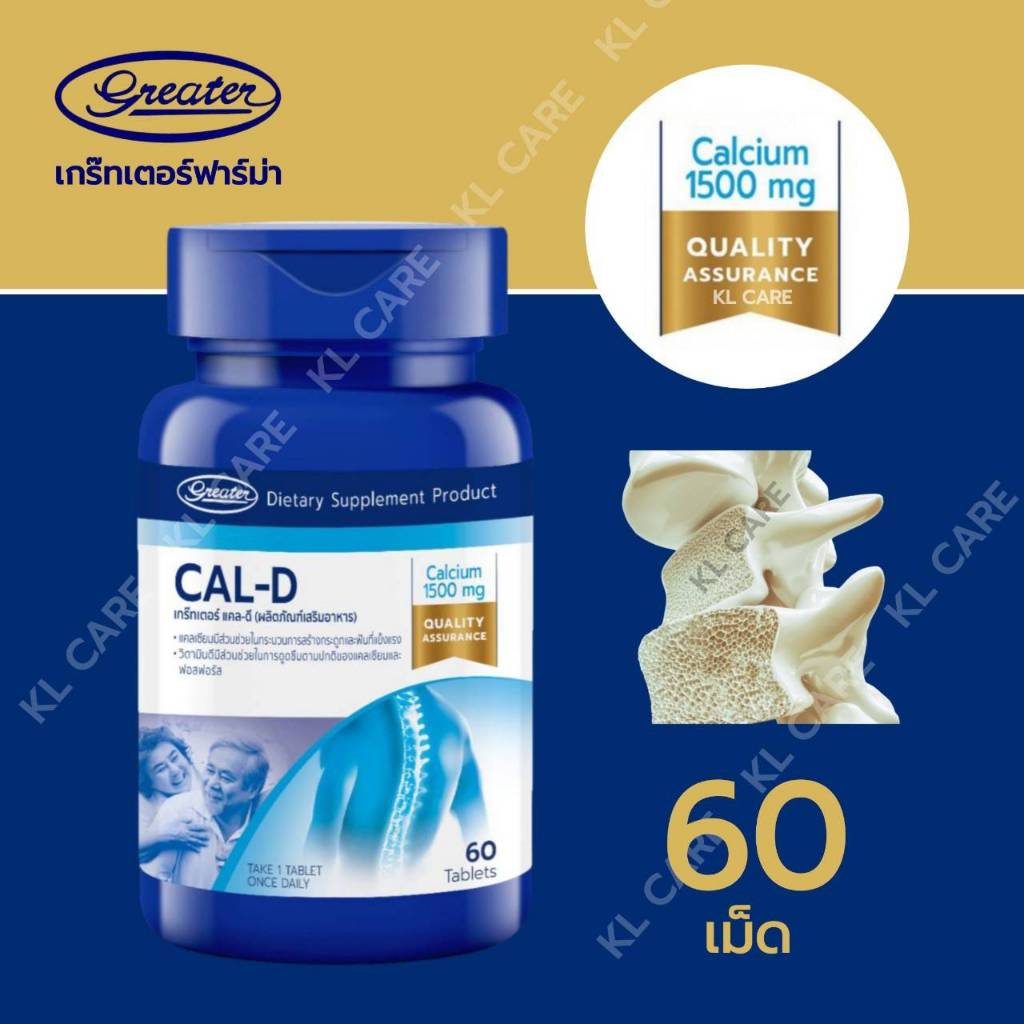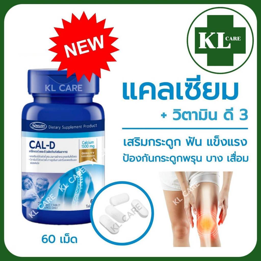 Calcium 1500 D3 แคลเซี่ยม บำรุงกระดูก ป้องกันโรคกระดูกพรุน ปวดข้อเข่า ข้อเสื่อม Cal-D 60 เม็ด ของแท้
