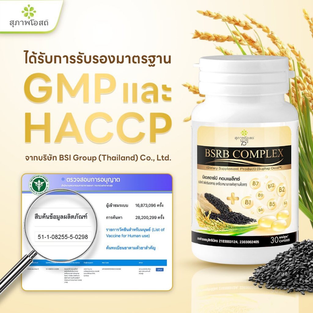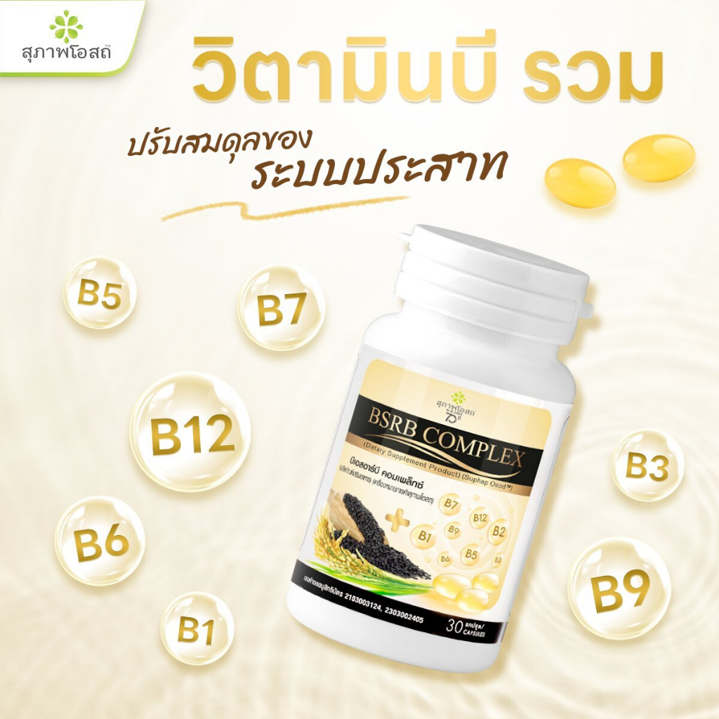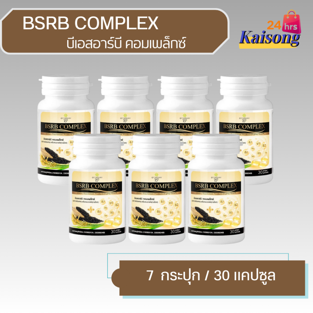 BSRB Complex ( 7 กระปุก ) สุภาพโอสถ บีเอสอาร์บี คอมเพล็กซ์ [30 แคปซูล] น้ำมันงาดำน้ำมันรำข้าว วิตามินบีรวม
