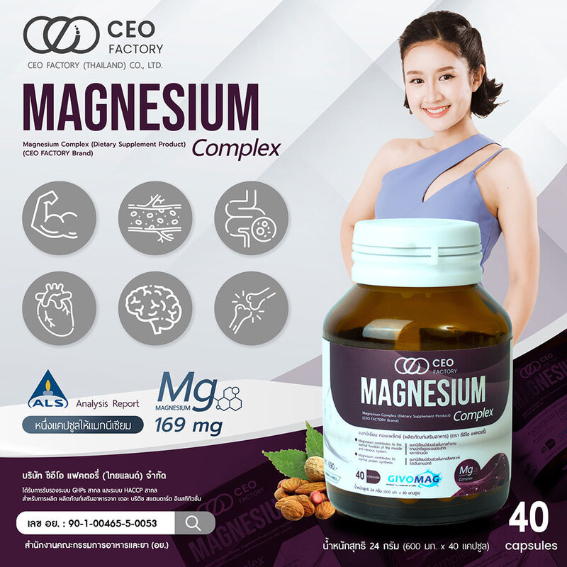 CEO Factory Magnesium Complex 40 Capsules ซีอีโอ แฟคตอรี่ ผลิตภัณฑ์อาหารเสริม.