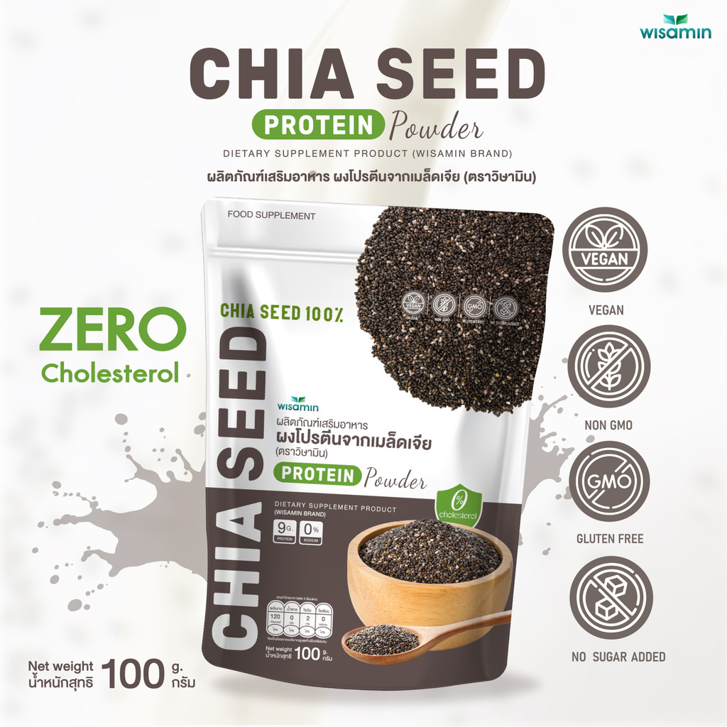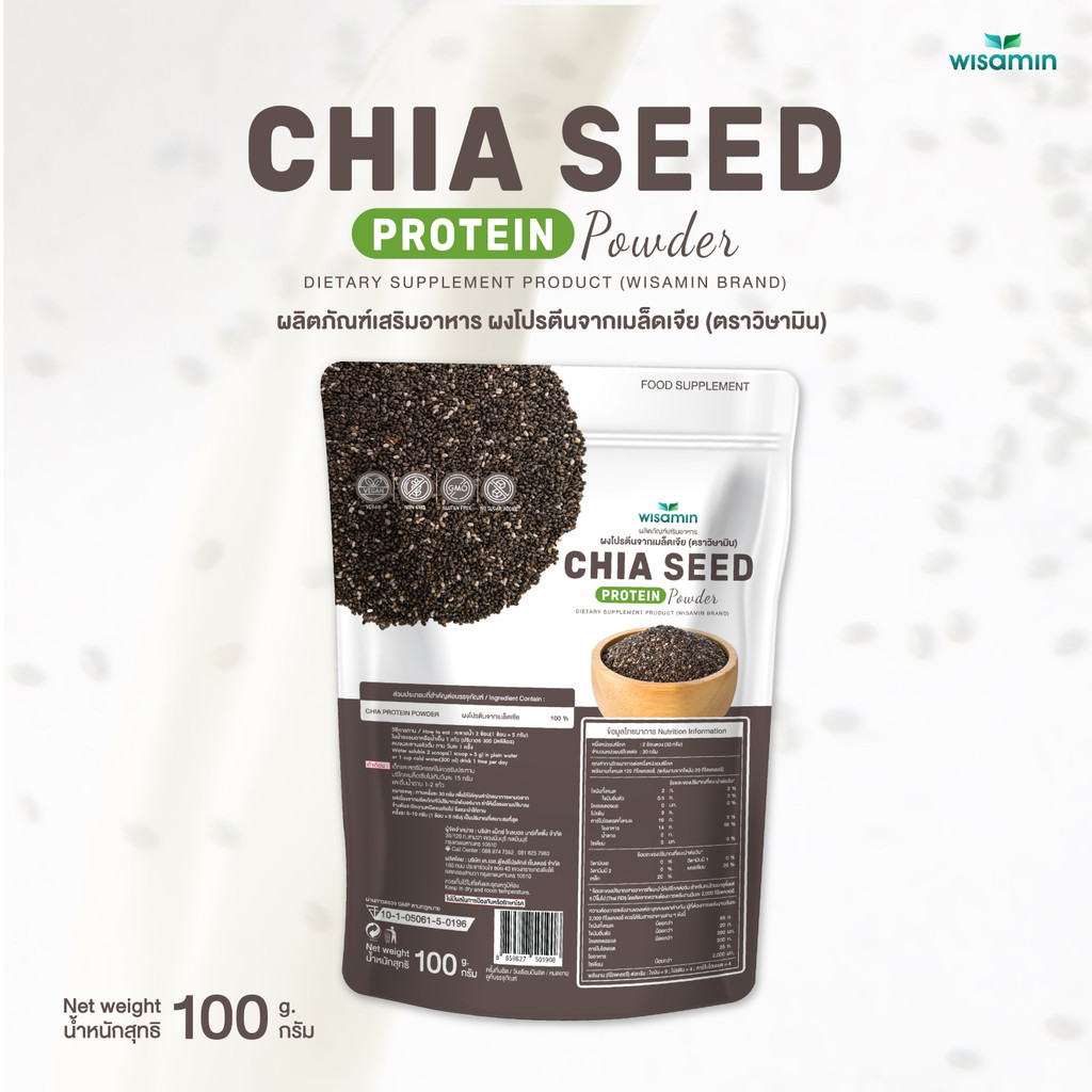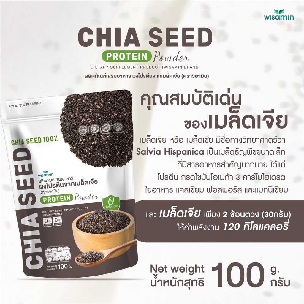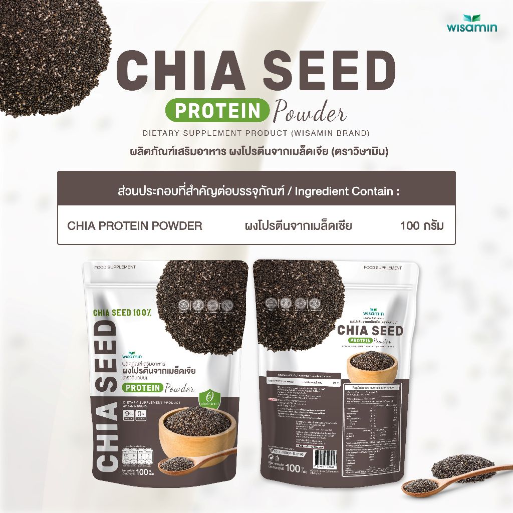 CHIA SEED PROTEIN ผงโปรตีนจากเมล็ดเจีย (ตราวิษามิน) จำนวน 1 ถุง ปริมาณ 100 กรัม ปลอด GMO ปลอดกลูเตน
