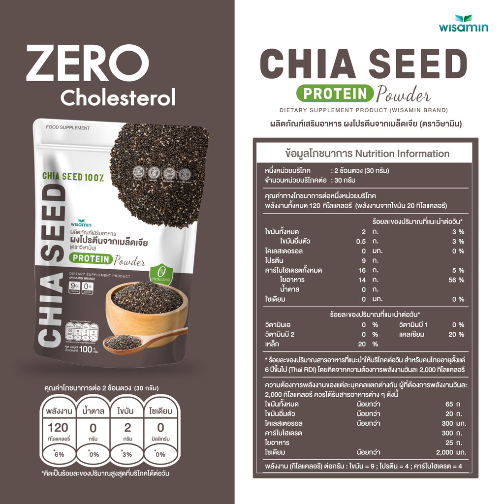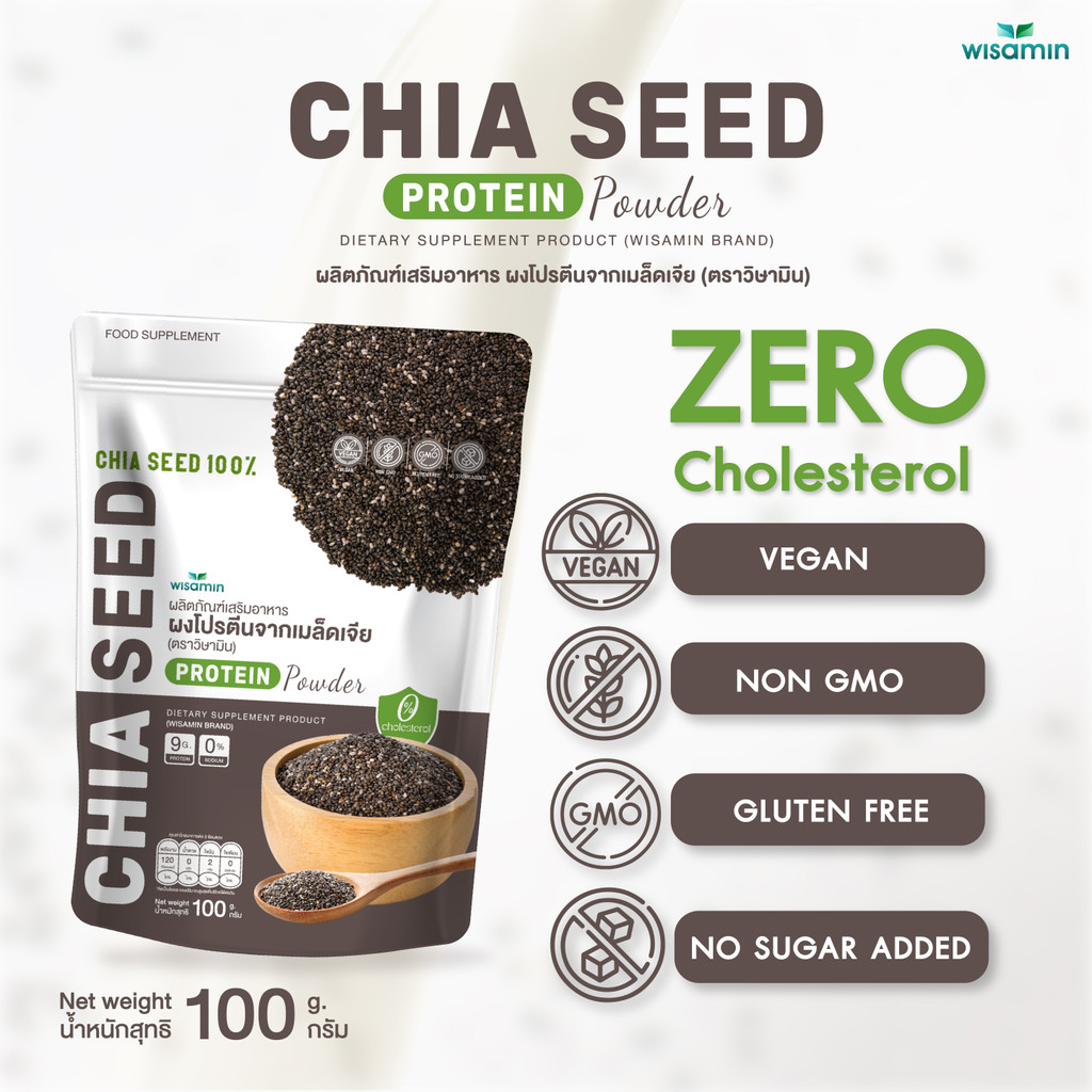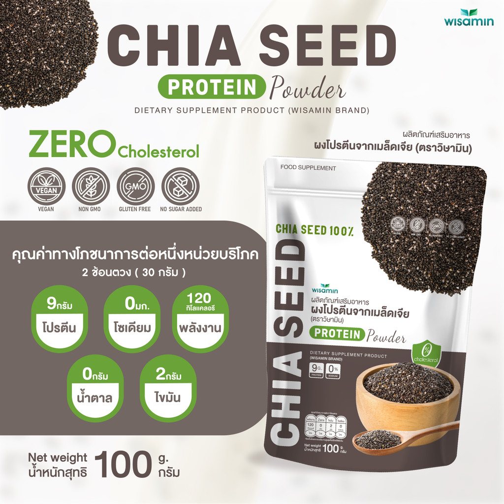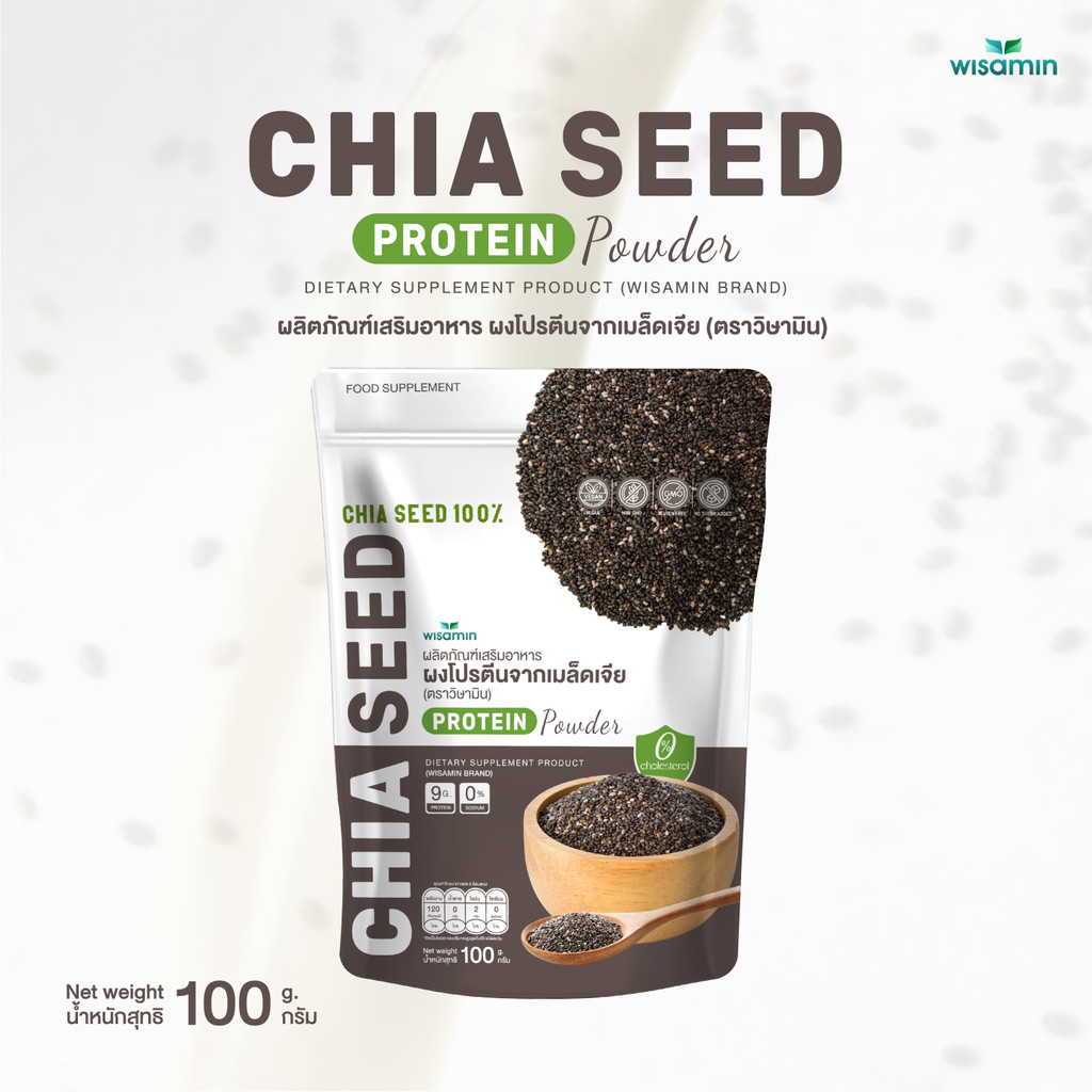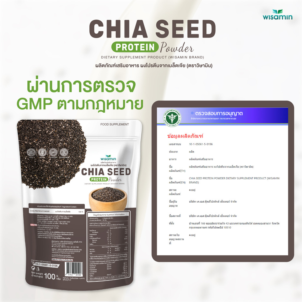 CHIA SEED PROTEIN ผงโปรตีนจากเมล็ดเจีย (ตราวิษามิน) จำนวน 1 ถุง ปริมาณ 100 กรัม ปลอด GMO ปลอดกลูเตน