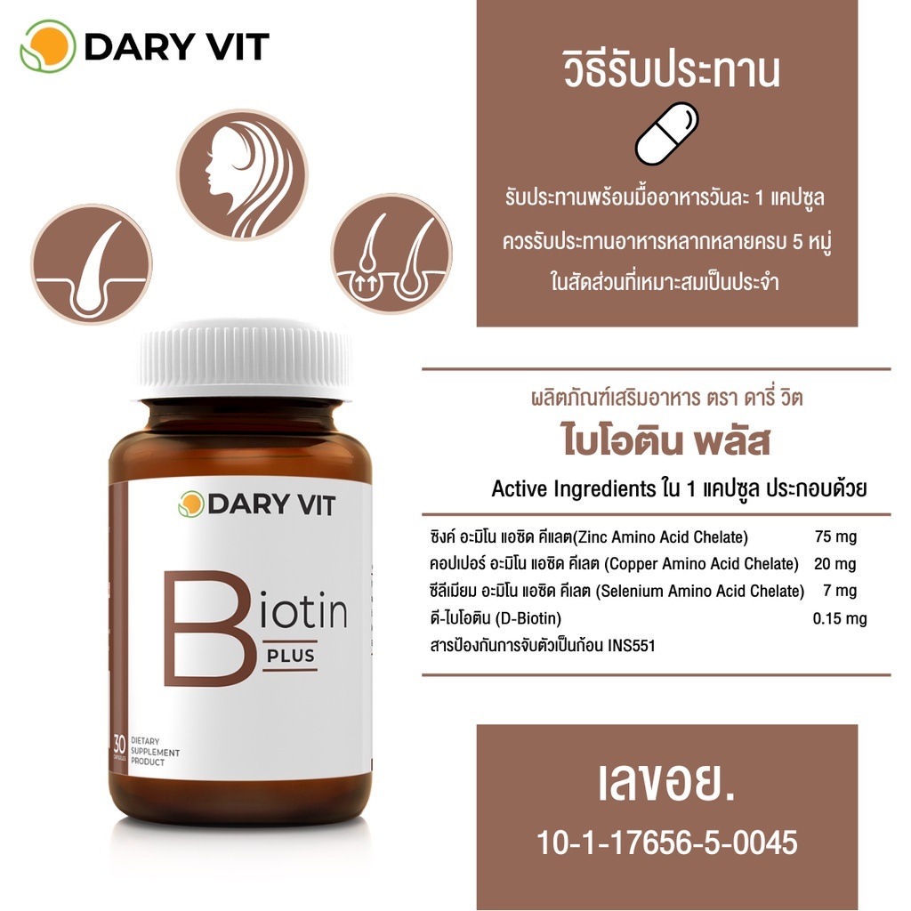 Dary Vit Biotin ดารี่ วิต ไบโอติน (30แคปซูล) ไบโอติน สังกะสี (ซิงค์)