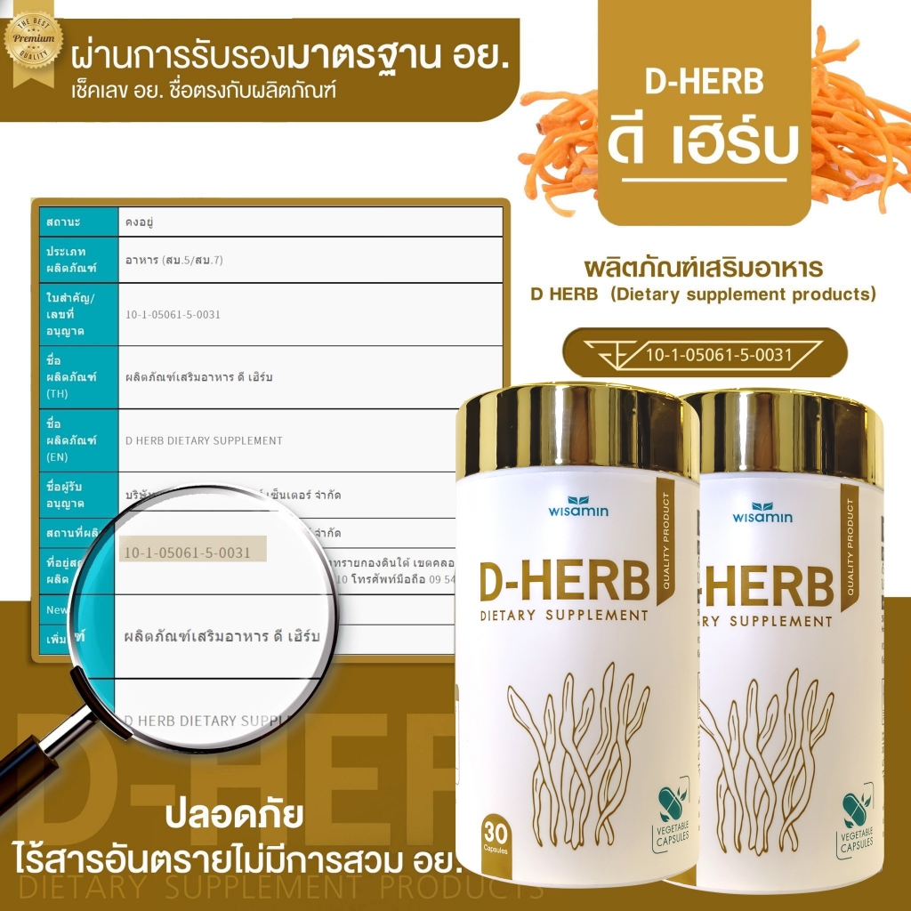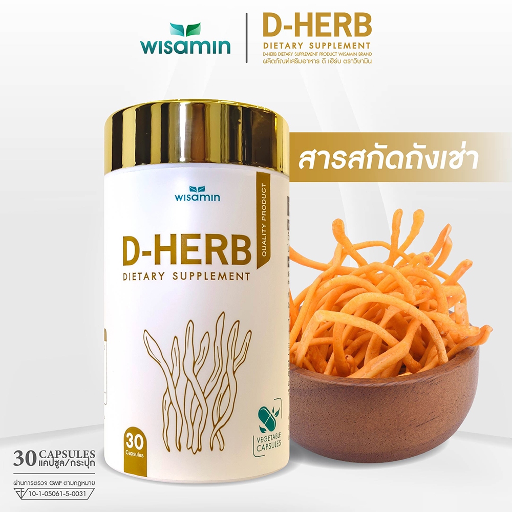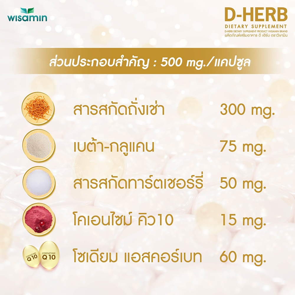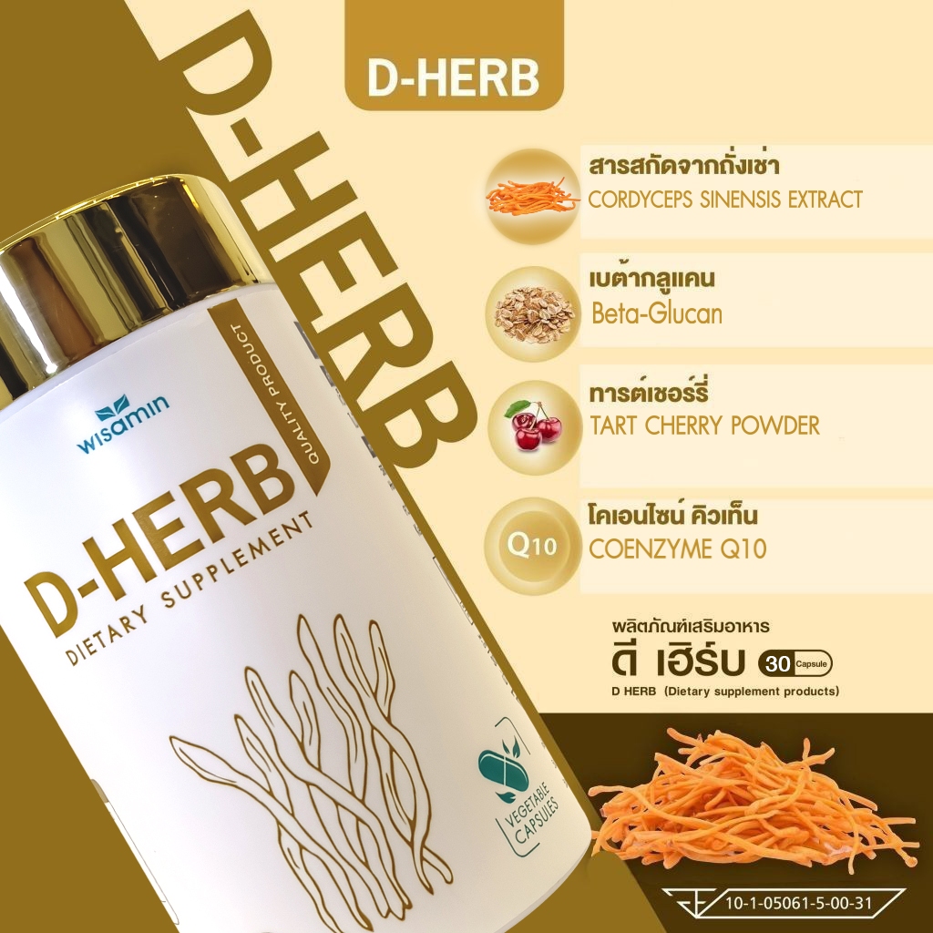 D-HERB (ดีเฮิร์บ) ผลิตภัณฑ์ ถั่งเช่าสกัด เบต้ากลูแคน ทาร์ตเชอร์รี่ 500 mg / แคปซูล (ตราวิษามิน) จำนวน 1 กระปุก 30 แคปซูล