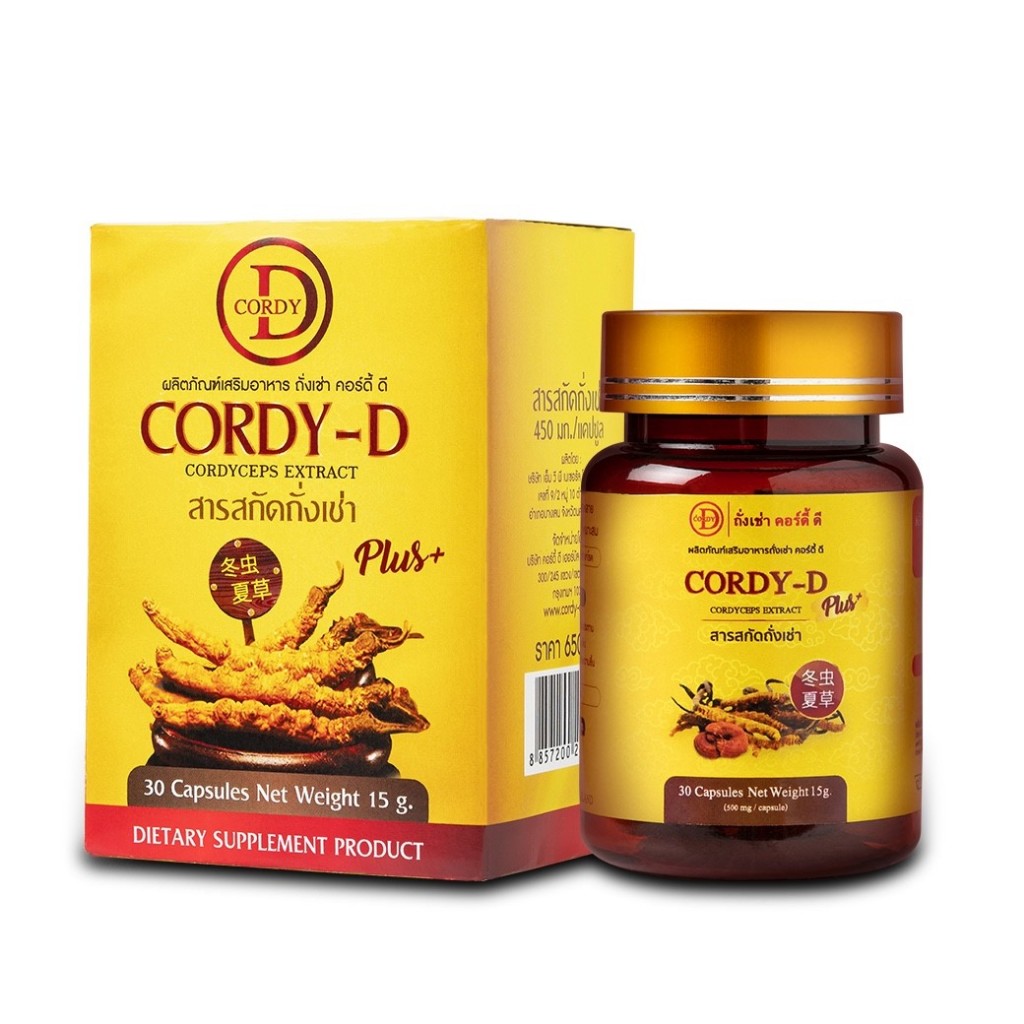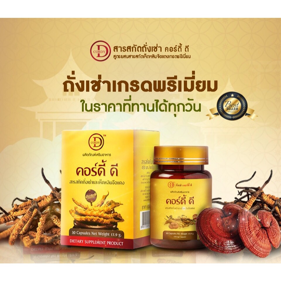 Cordy-D สูตรพรีเมียม สารสกัดถั่งเช่า 💯 ปริมาณ 450 มก. และเห็ดหลินจือ ปริมาณ 50 มก.
